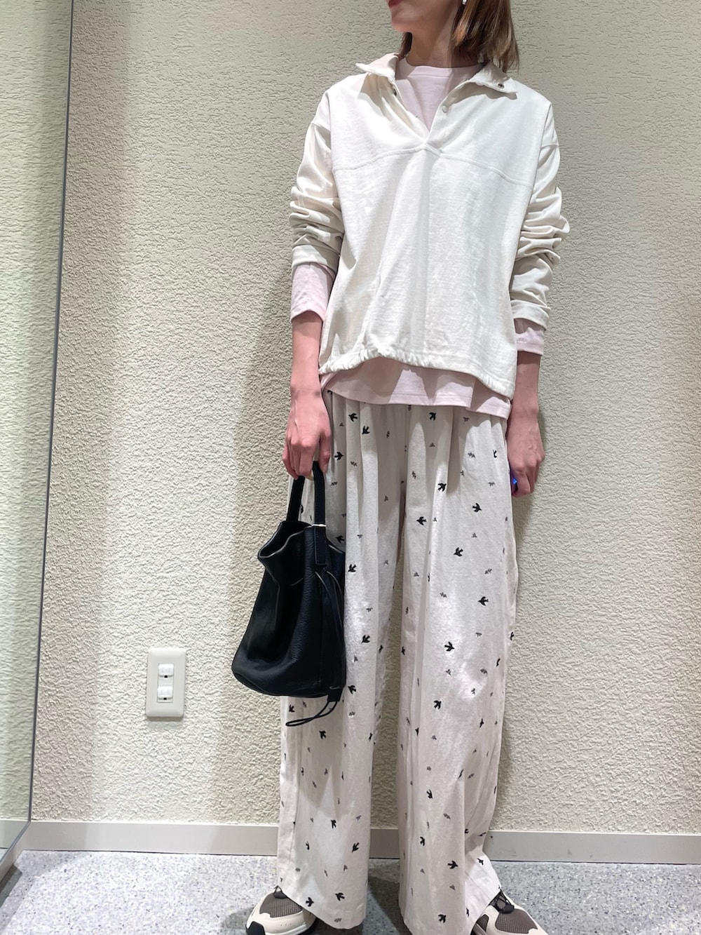 差し色にピンクを入れてコーデにメリハリをつけました!