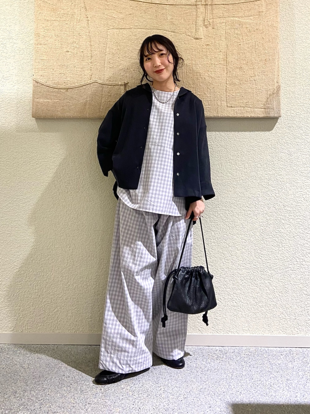 145cm|ギンガムタックワイドパンツ