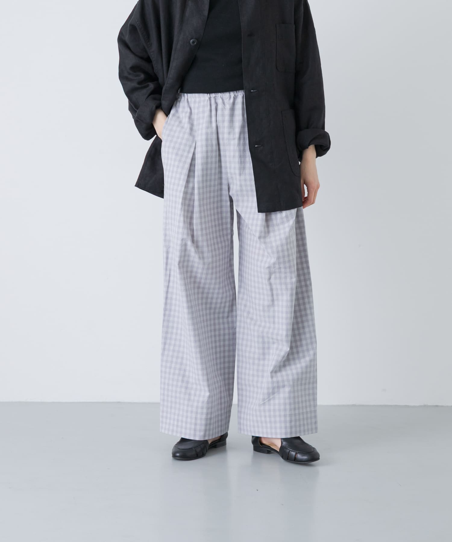 ギンガムタックワイドパンツ