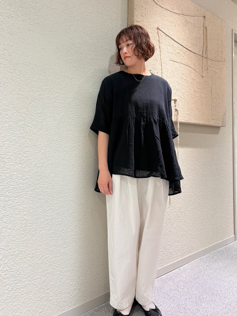 コットンクレープギャザーブラウス