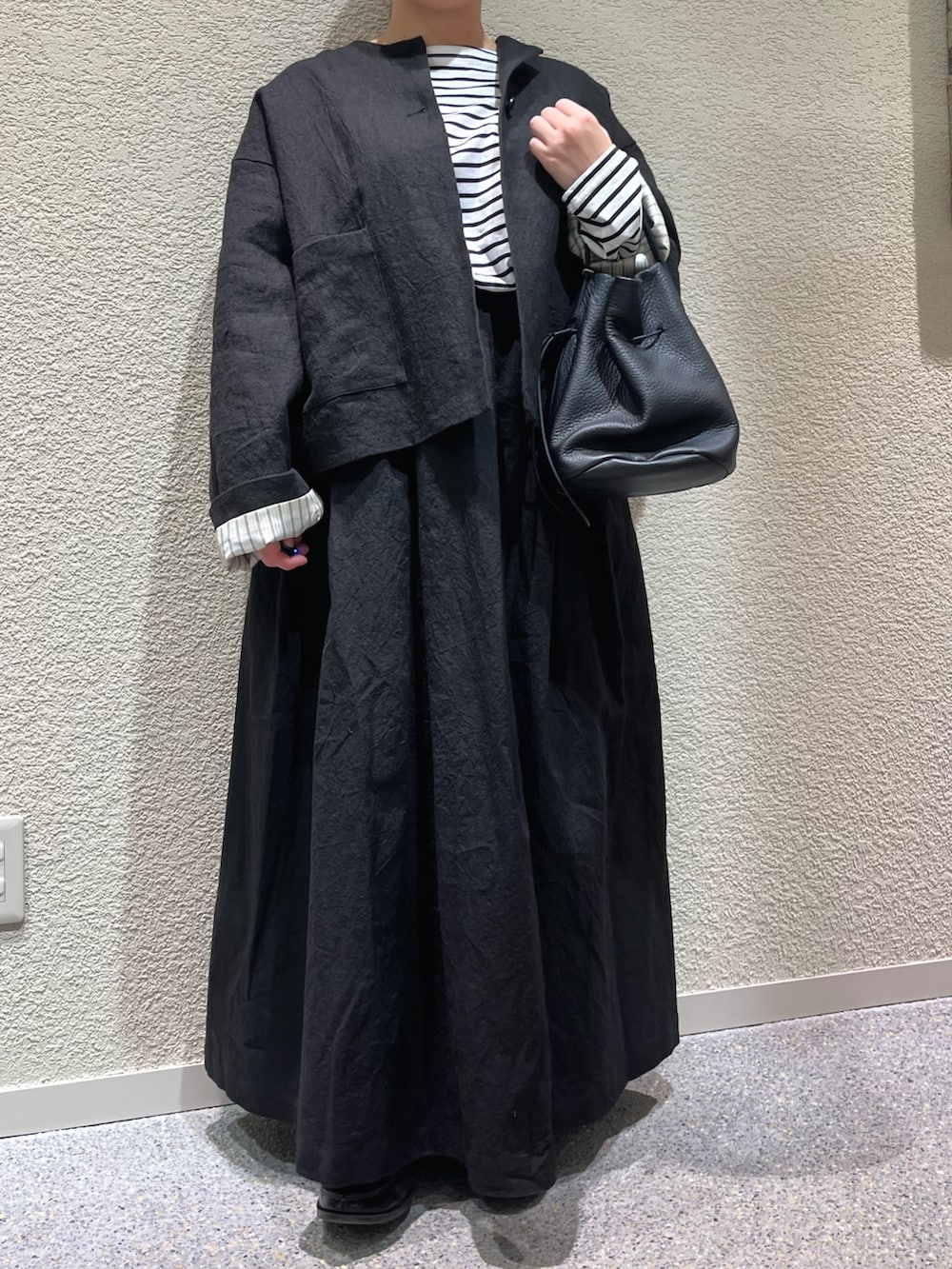 ナチュラルなワッシャー感を作っております。ウエストは総ゴム+紐付きなので履き心地も◎