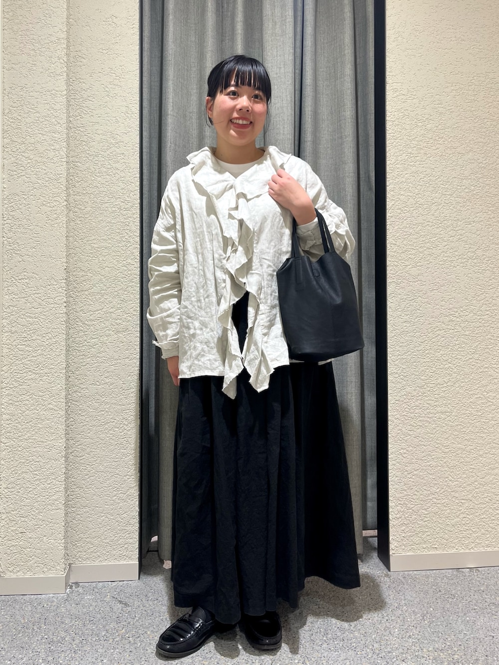 リネンフリルカラーシャツ。