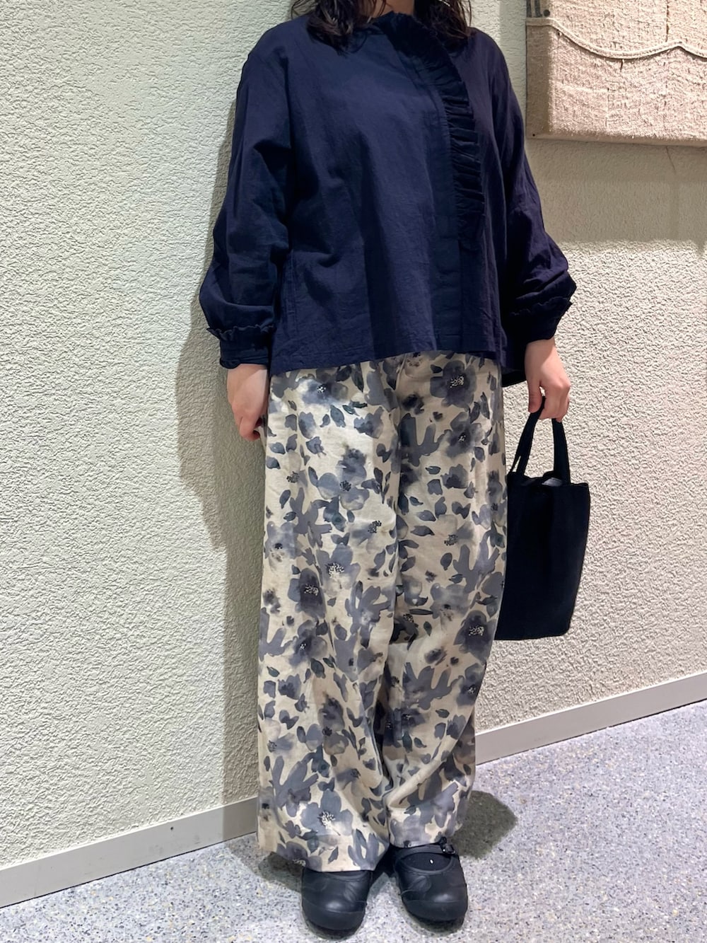 コットンリネンプリントイージーパンツ。