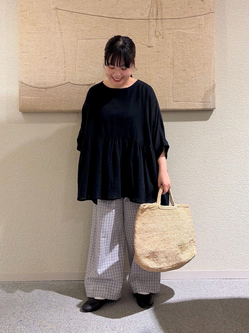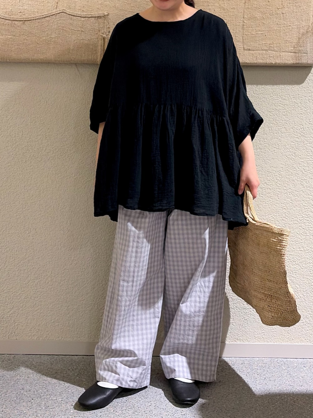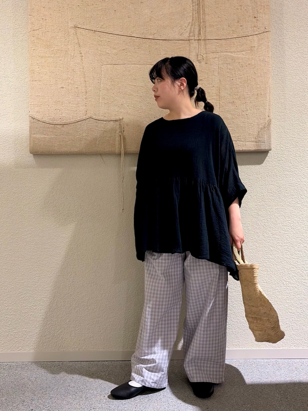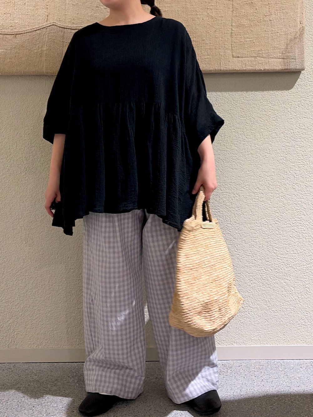 ギンガムタックワイドパンツ
