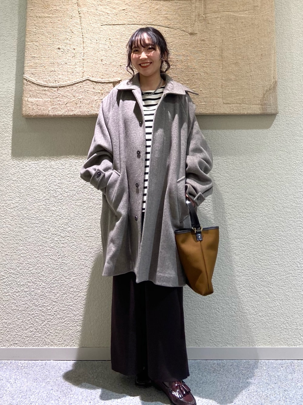 ・シックなチャコール×華やかなリバティ柄のコントラストで大人らしい印象に
