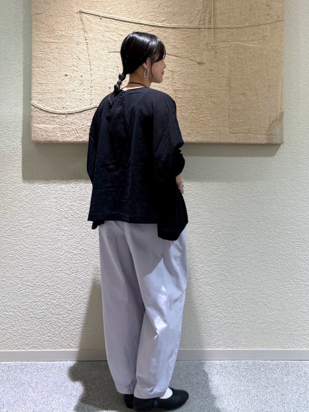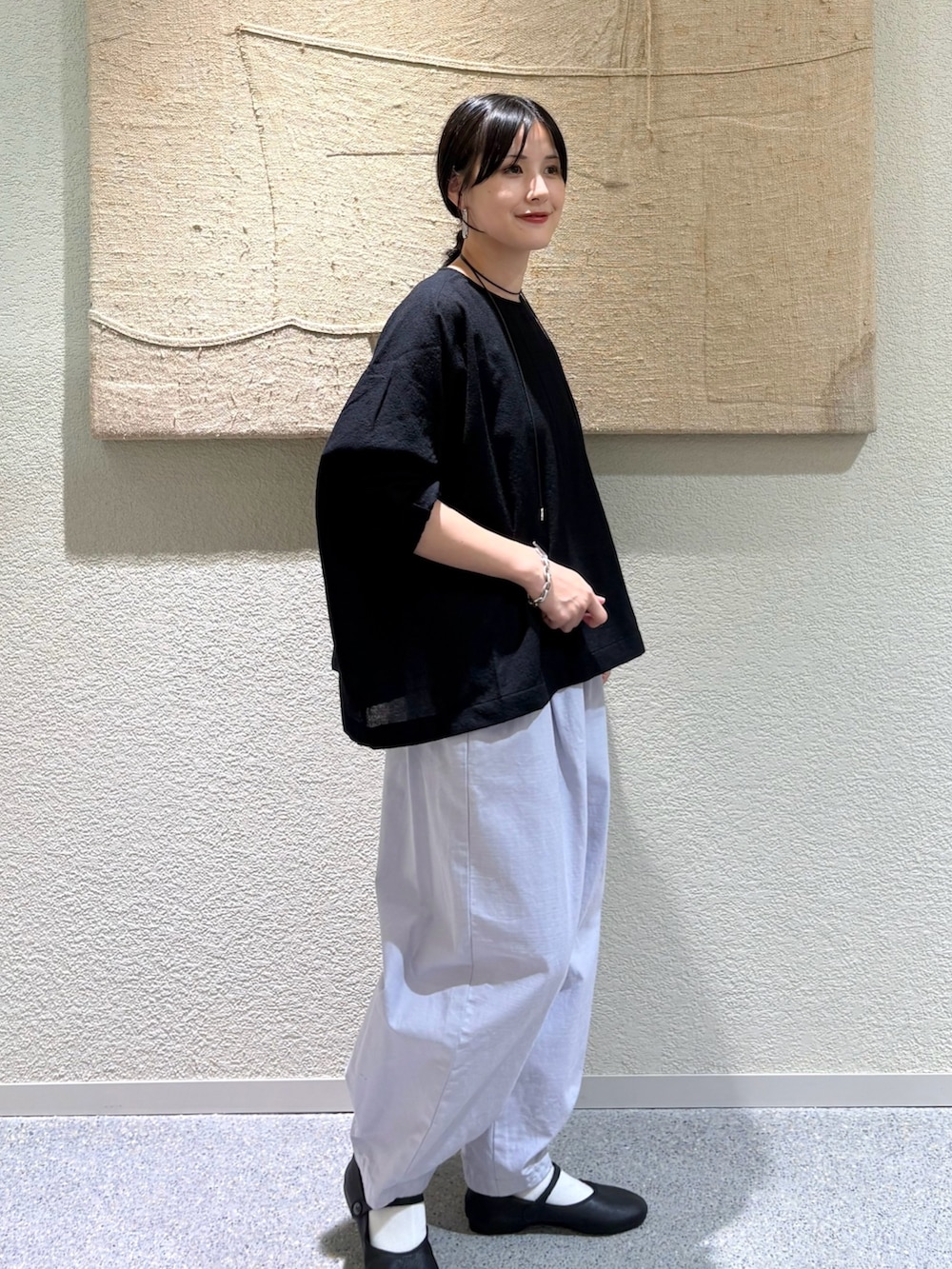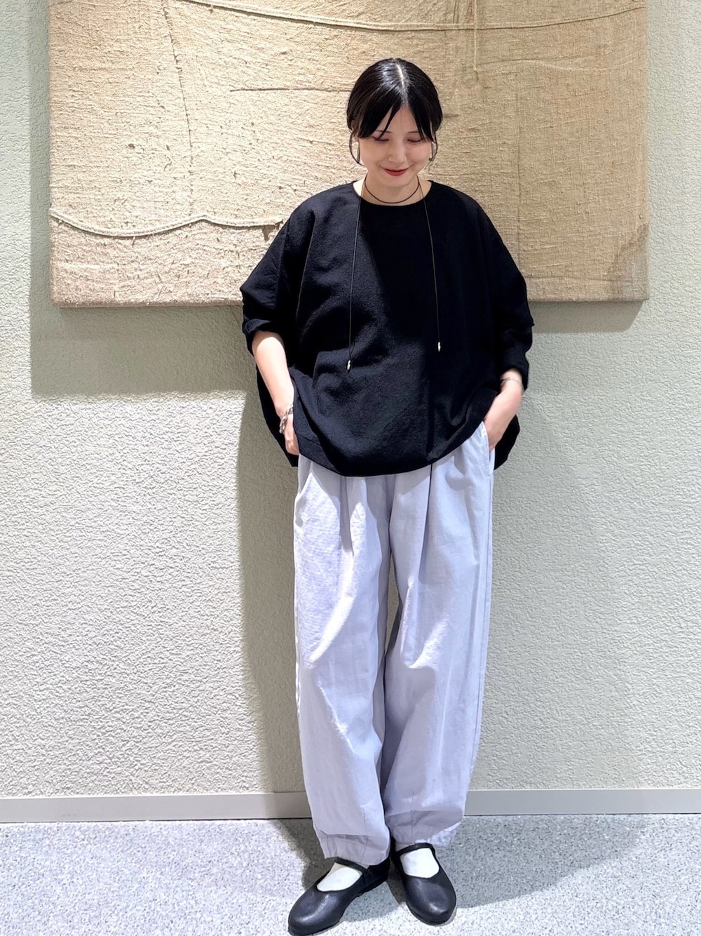 ・ゆったりしたトップスとコクーンシルエットのボトムスで、こなれ感のあるリラックススタイルに
