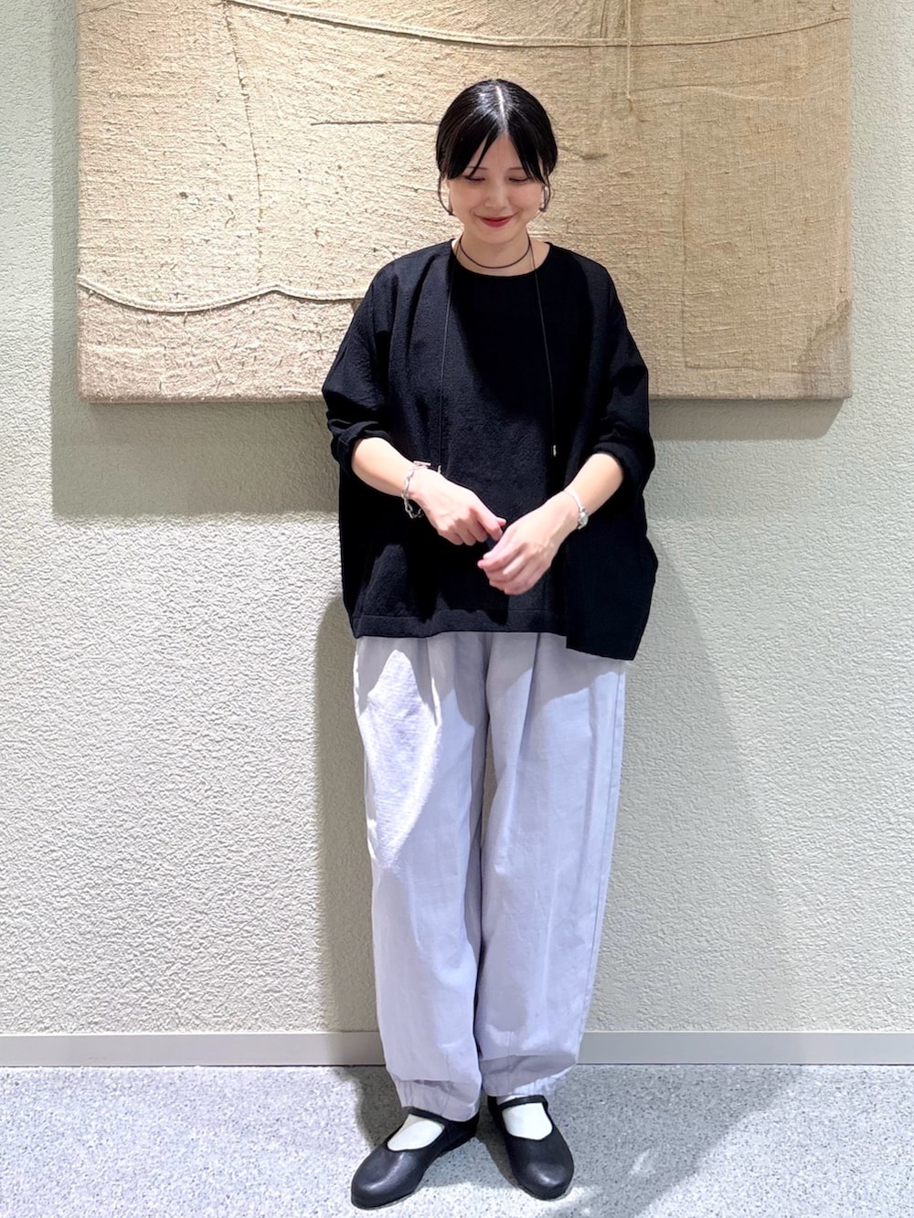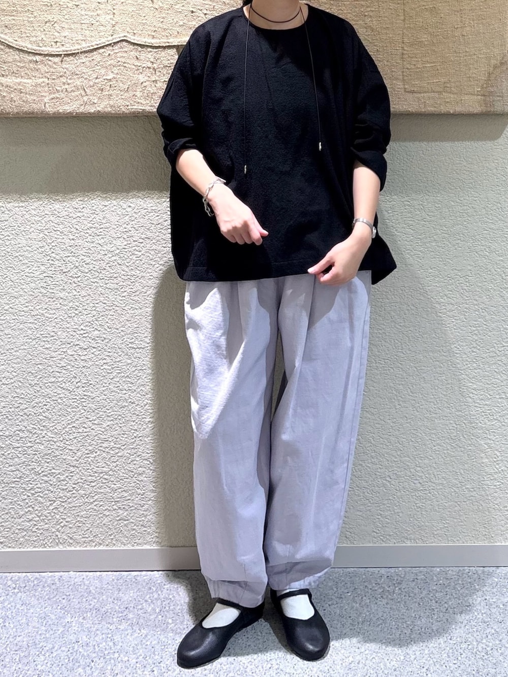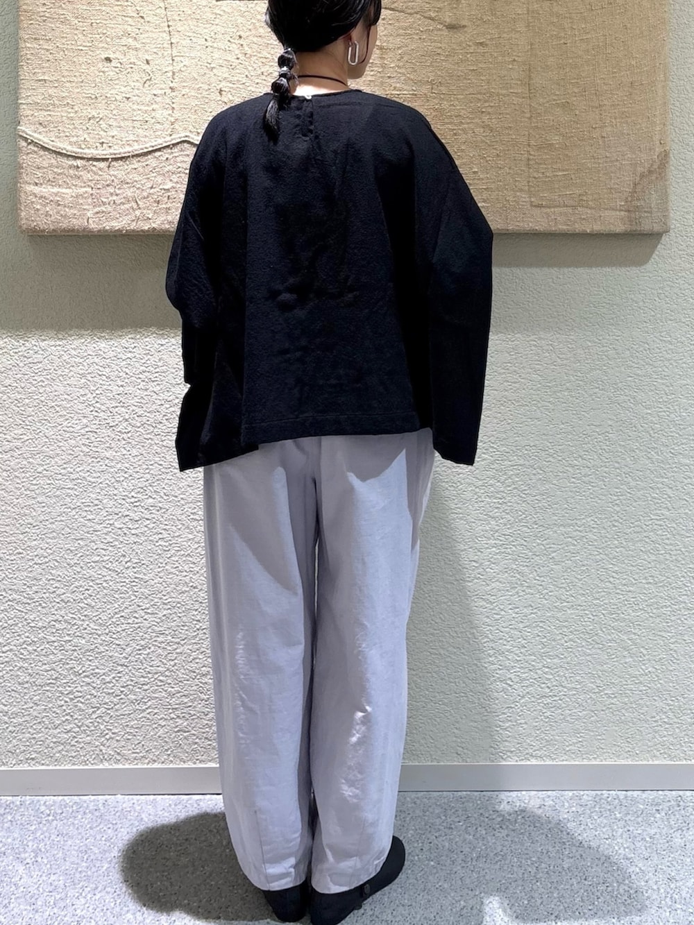ふんわりとしたガーゼ素材が魅力のプルオーバー。軽さと柔らかさがありながらも、ブラックカラーでぐっとシックな印象に。リラックス感と上品さを兼ね備えた一枚です。