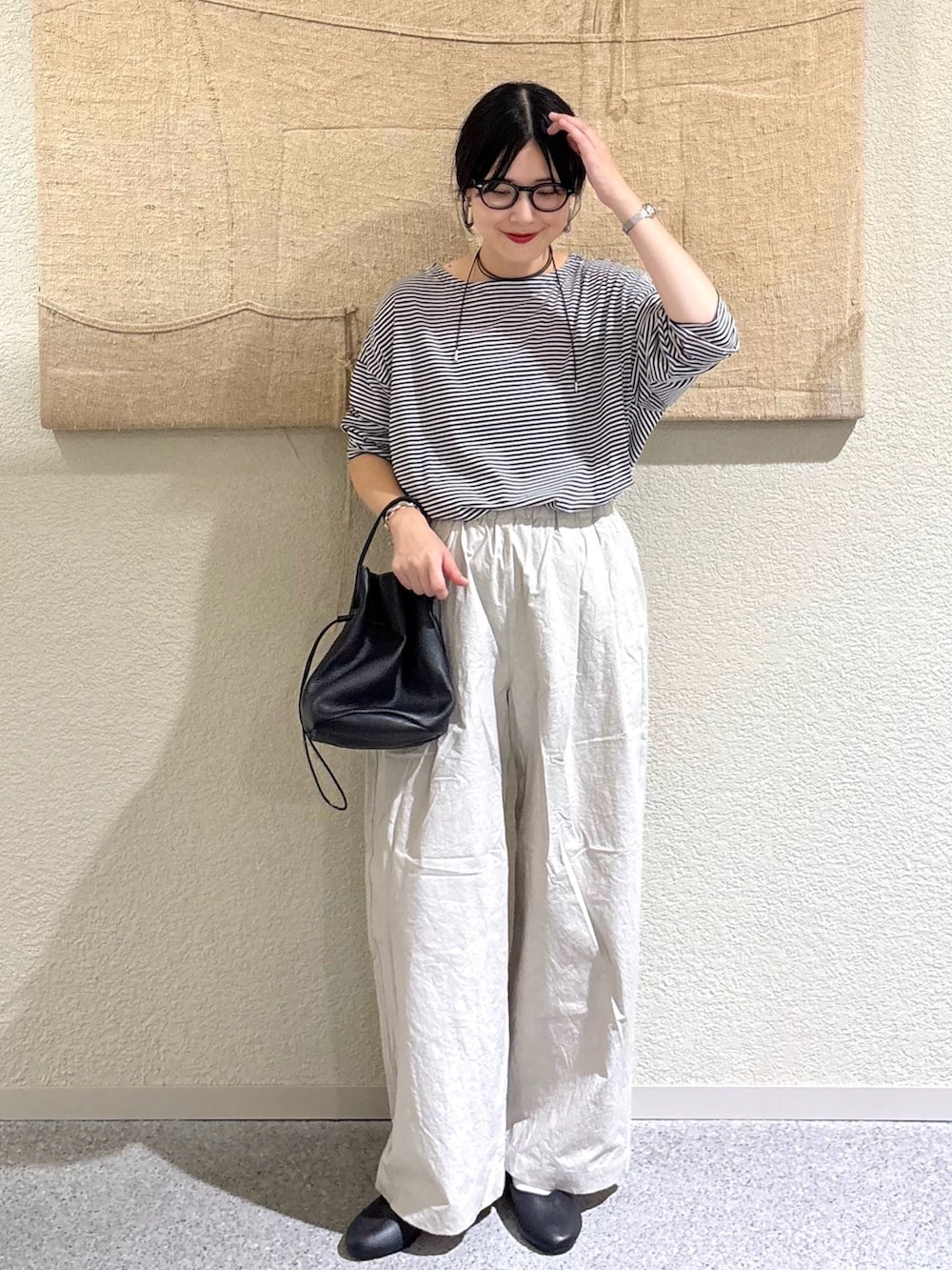 ・ボーダー柄×無地パンツの王道スタイルでシンプルながら洗練された印象