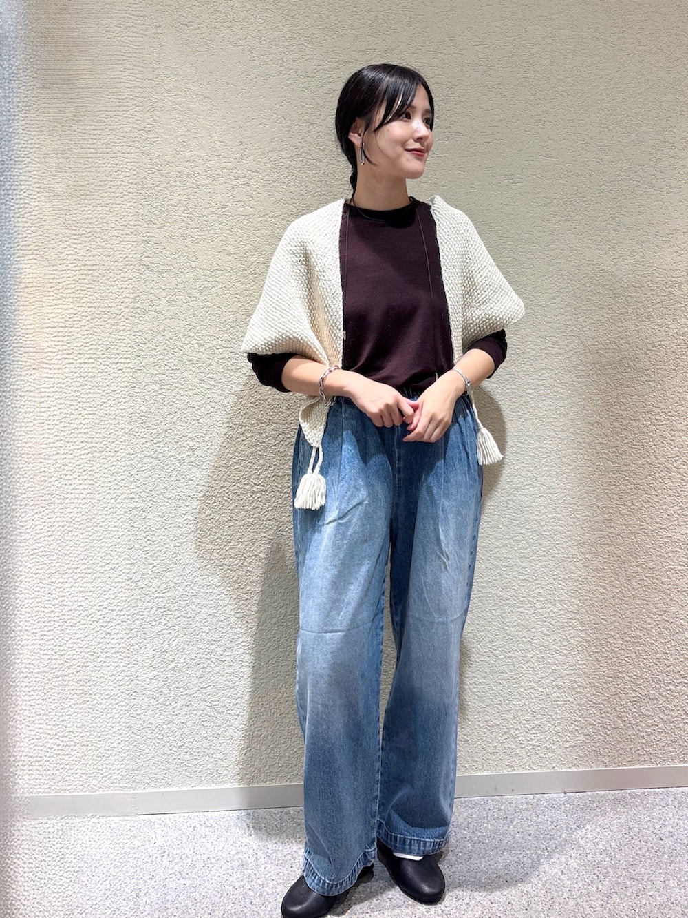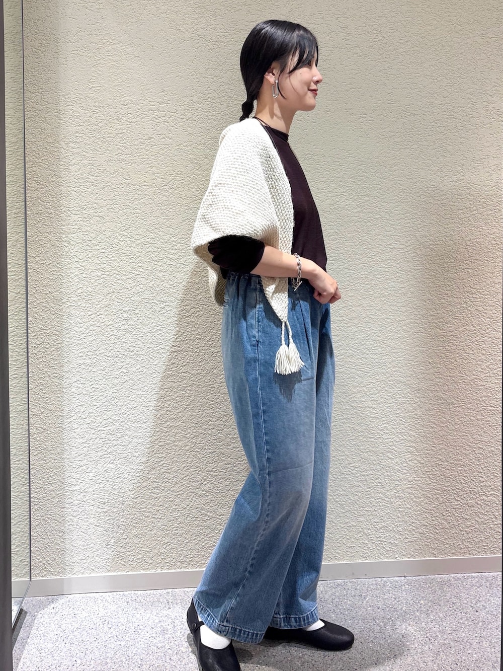 ・トップスをインしてシルエットを整えることで、大人らしいバランスの良いスタイリングに