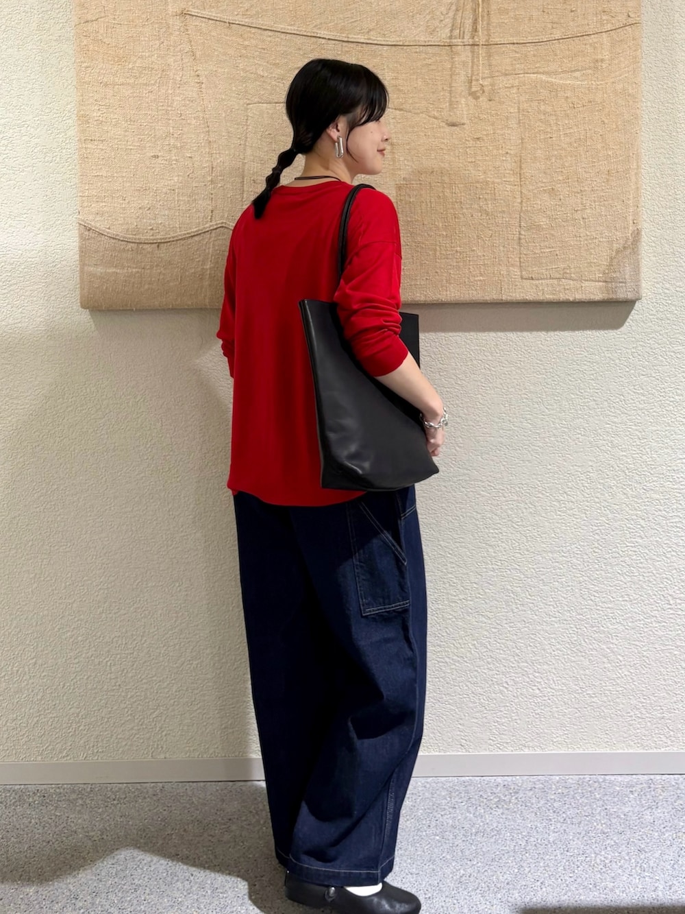 程よくゆとりのあるシルエットでリラックス感のある穿き心地が魅力のデニムペインターパンツ。ワークテイストながらもかぐれらしい柔らかな風合いで、女性らしさを感じる一本です。INDIGOの深みある色合いがREDのニットを引き立て、バランスの取れたスタイルに。