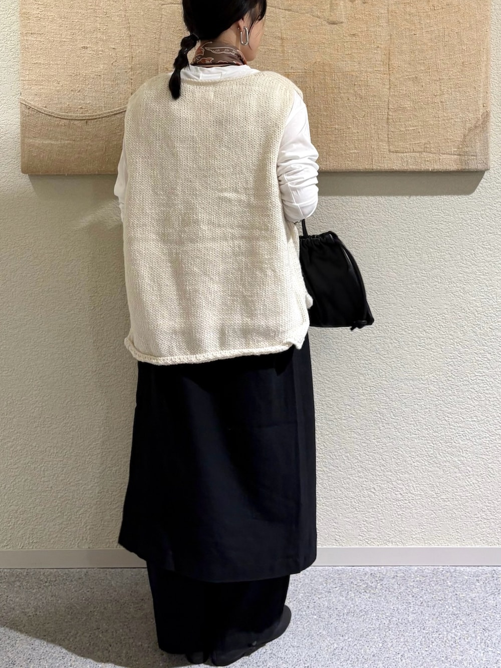 ペルーの職人によるハンド感のある編み地が魅力のニットベスト。ふんわりとした風合いと、IVORYの優しいトーンがスタイリングにぬくもりを添えます。シャツやカットソーとのレイヤードで季節の変わり目にもぴったり。