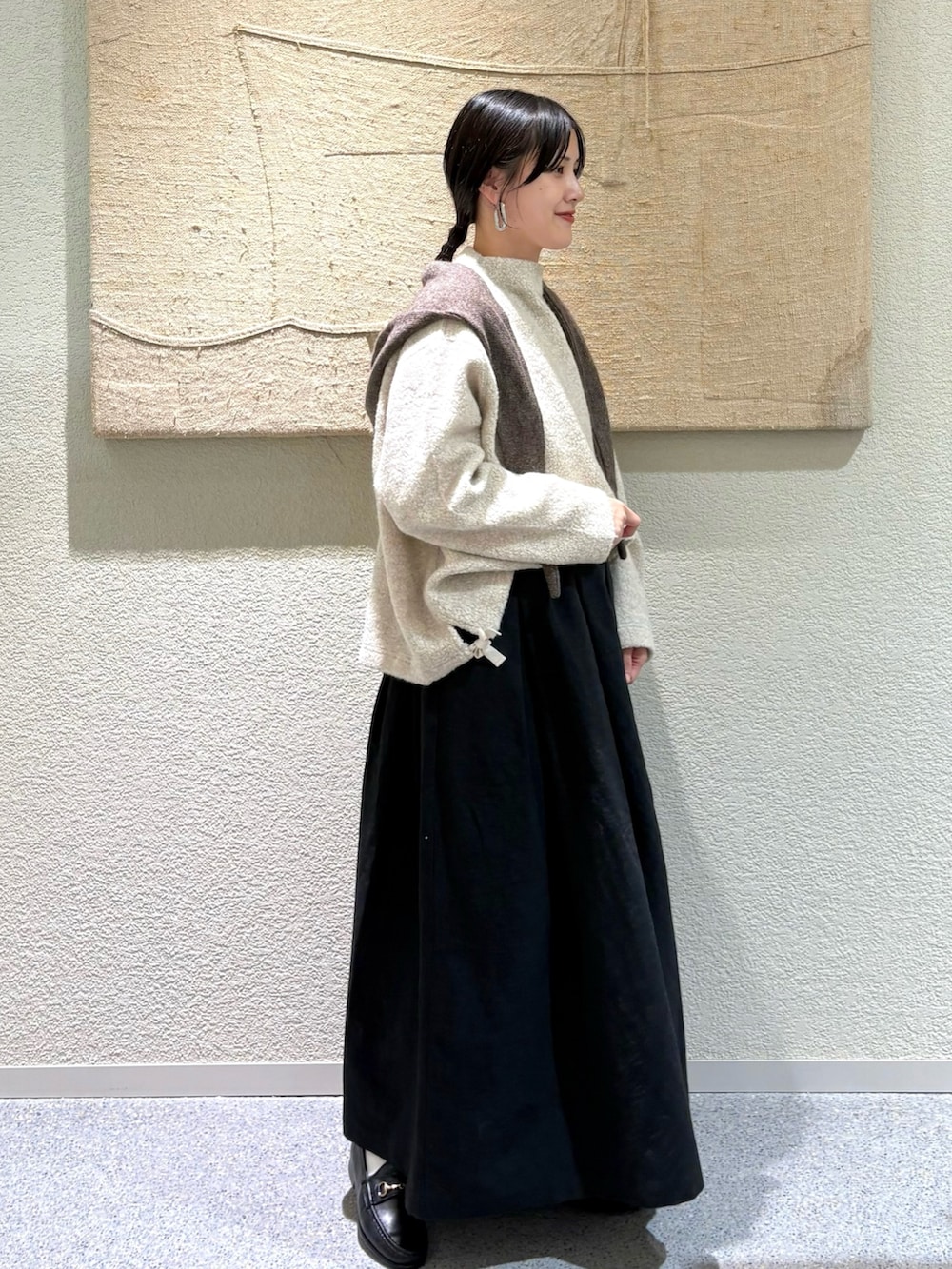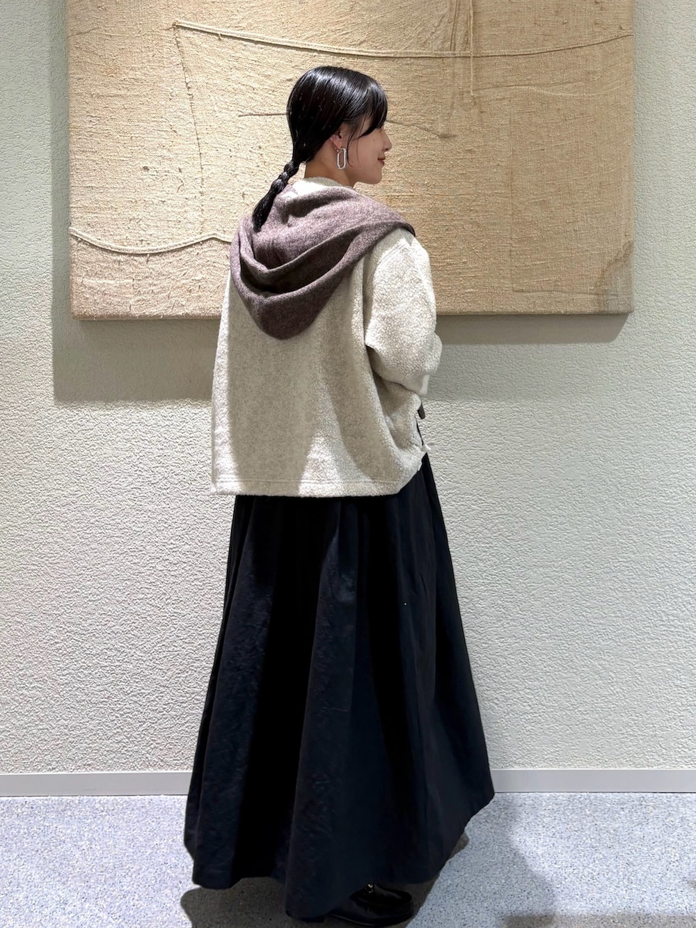 ・ボアのふんわり感とスカートの落ち感が好バランス。