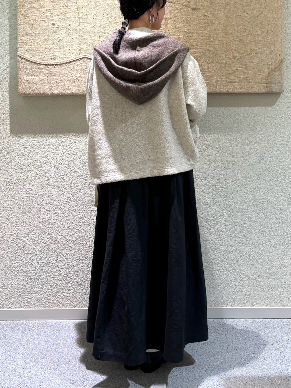 やわらかく暖かなヤクウールを使用したフードマフラー。首元を包み込みながらフードとしても使える2WAY仕様で、防寒性とデザイン性を兼ね備えています。モカのやさしい色合いがコーディネートにぬくもりをプラス。季節の変わり目の羽織としても◎