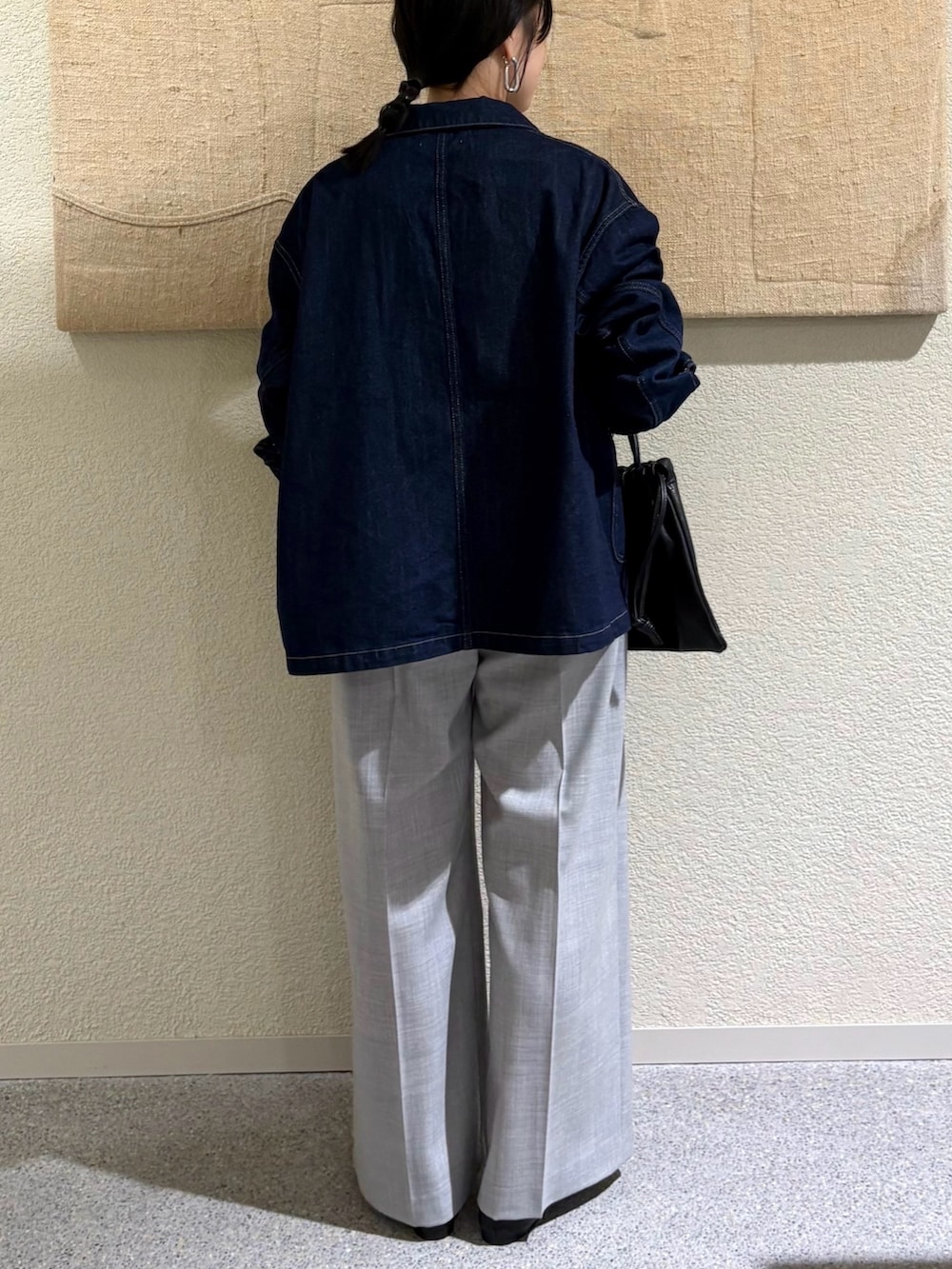 ワークテイストをベースにしたデニムカバーオール。ややゆとりのあるシルエットで、羽織るだけでこなれ感を演出します。インディゴの深みある色合いがスタイリング全体を引き締め、シーズンレスに活躍する一着です。