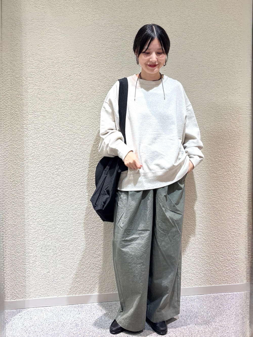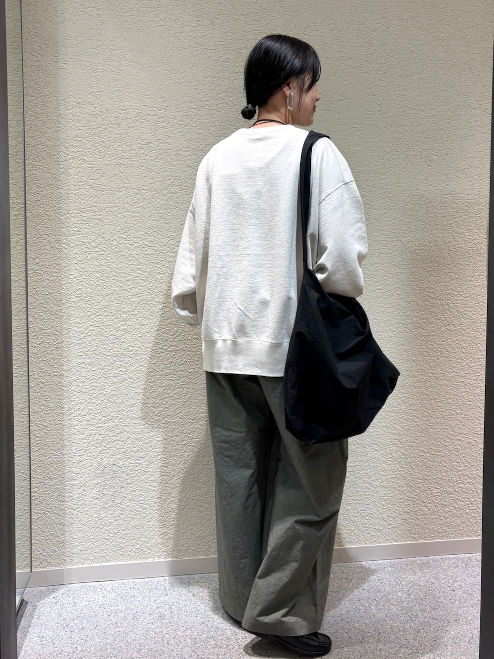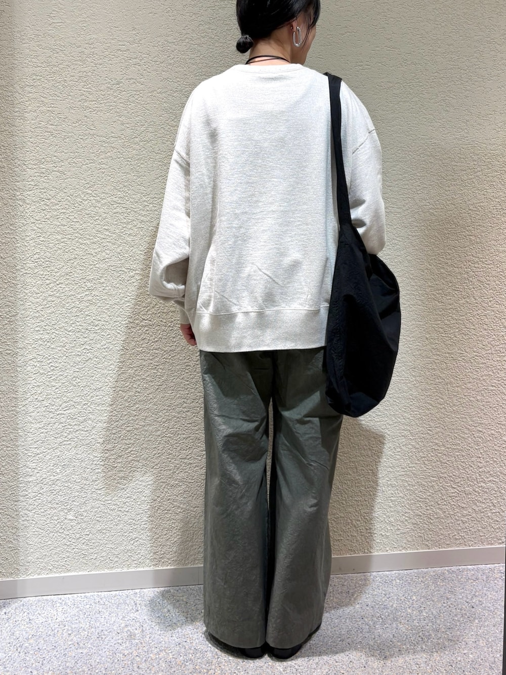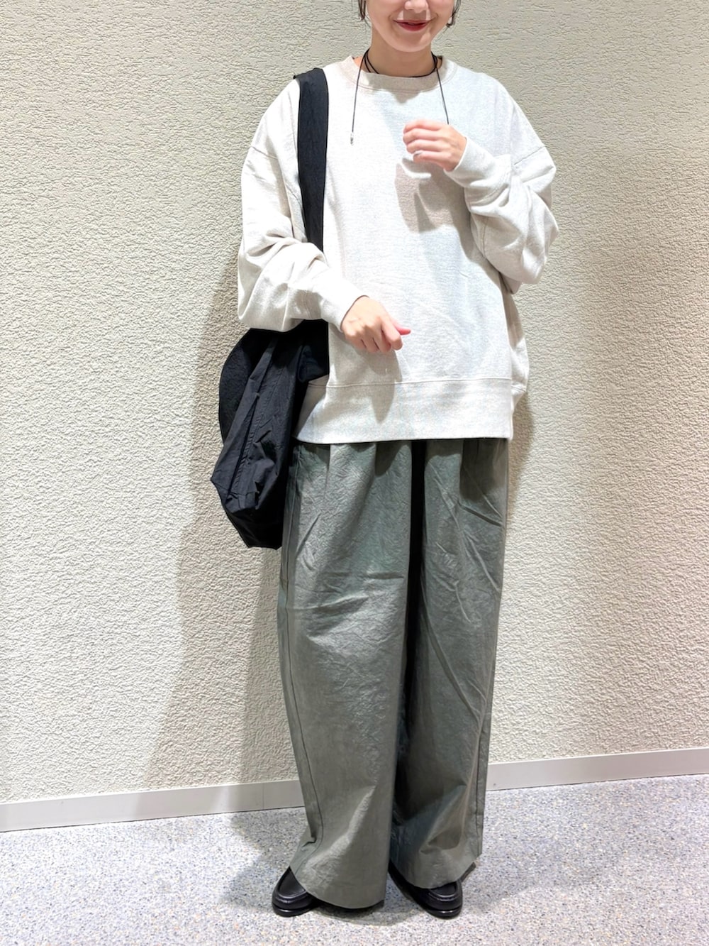 ・ゆったりしたスウェットにタックパンツを合わせて抜け感を演出