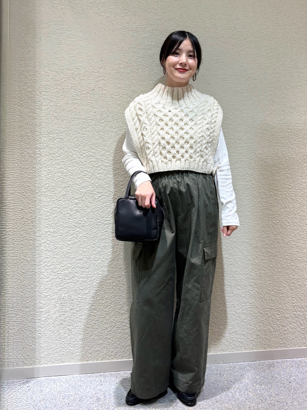 ・ベストのショート丈がスタイルアップ効果をプラス。