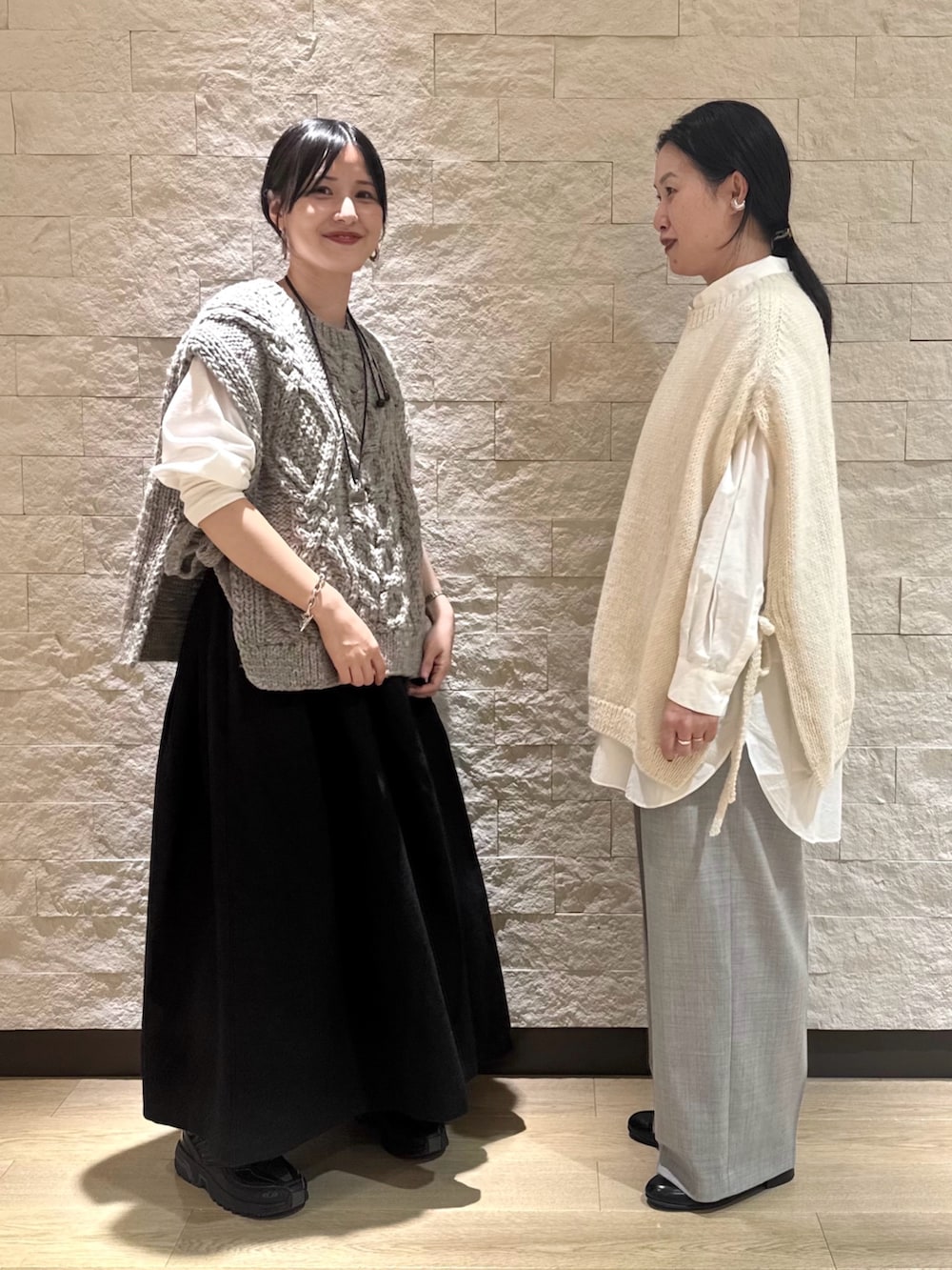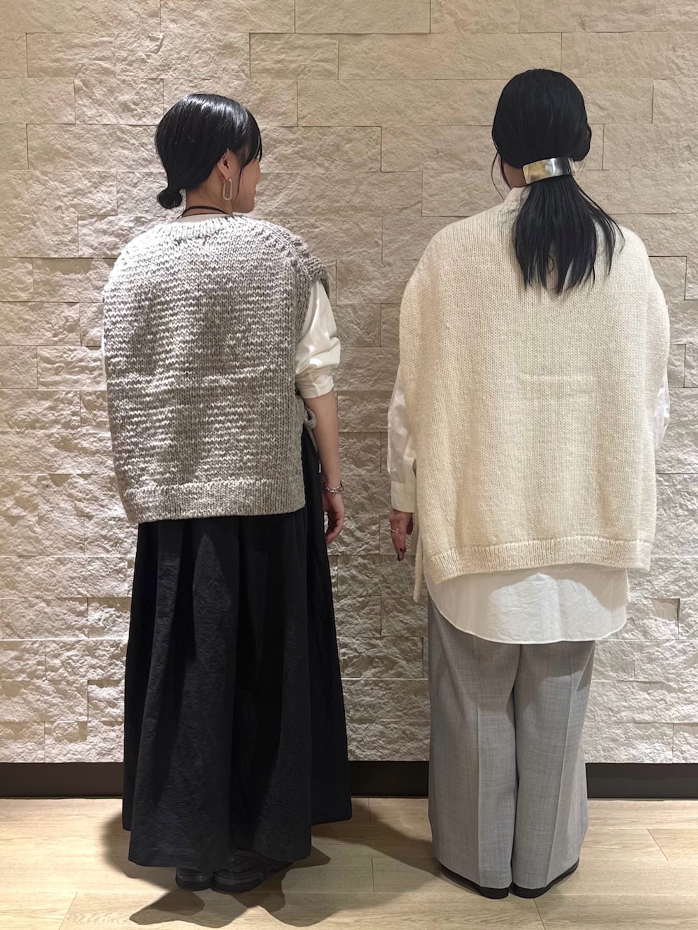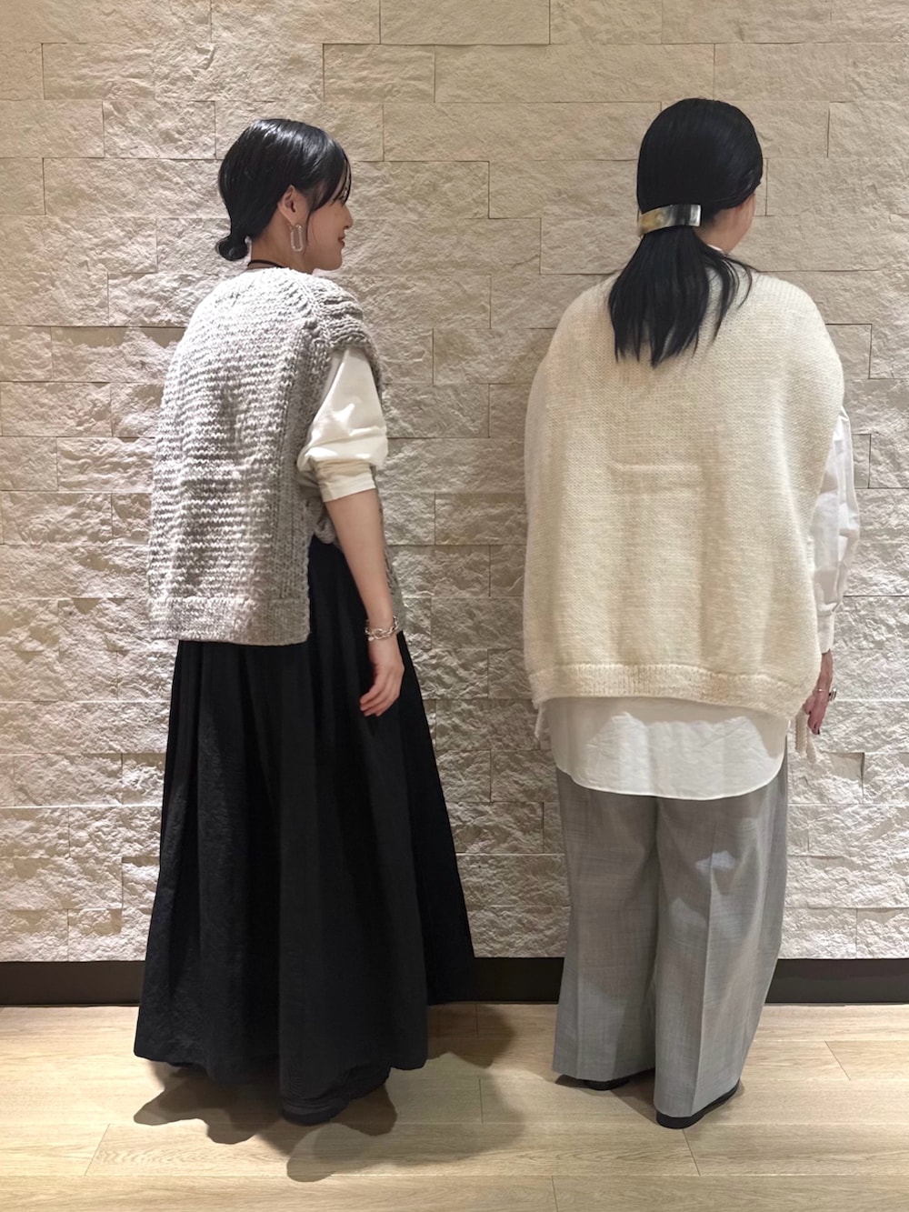 ・立体感のあるニットベストが、シンプルなカットソーに表情をプラス。