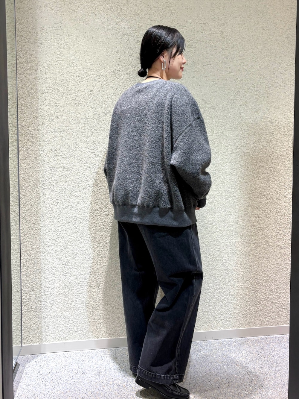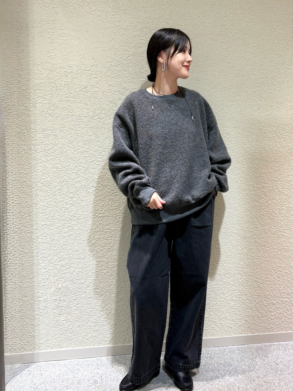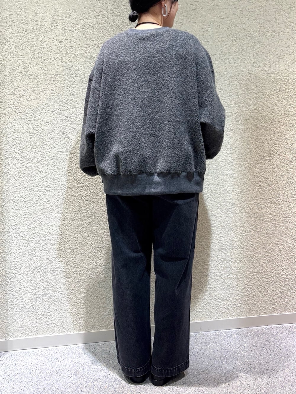 ふんわりと柔らかなウール混のボア素材を使用したプルオーバー。軽くてあたたかく、抜け感のある丸みのあるシルエットが魅力です。チャコールの深みのある色合いが、大人っぽいナチュラルスタイルにマッチします。