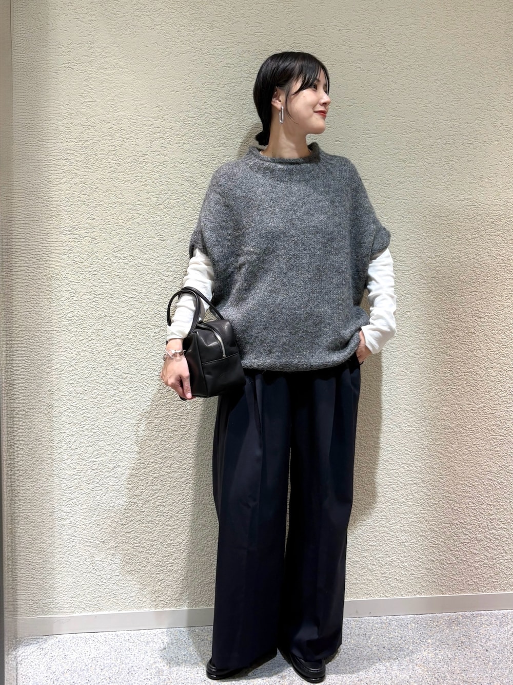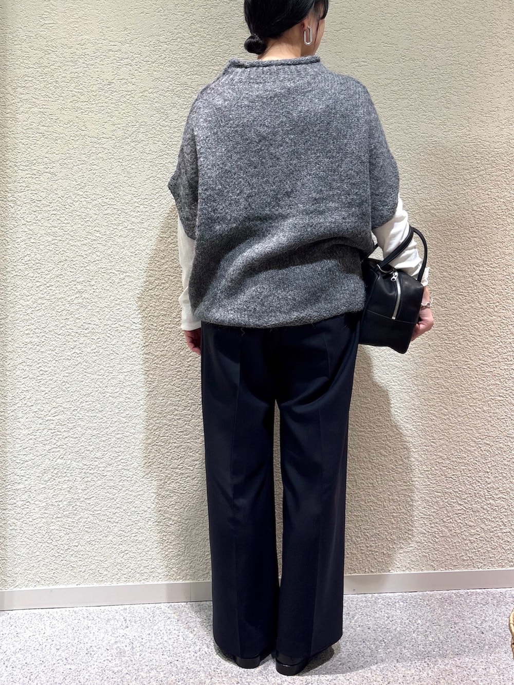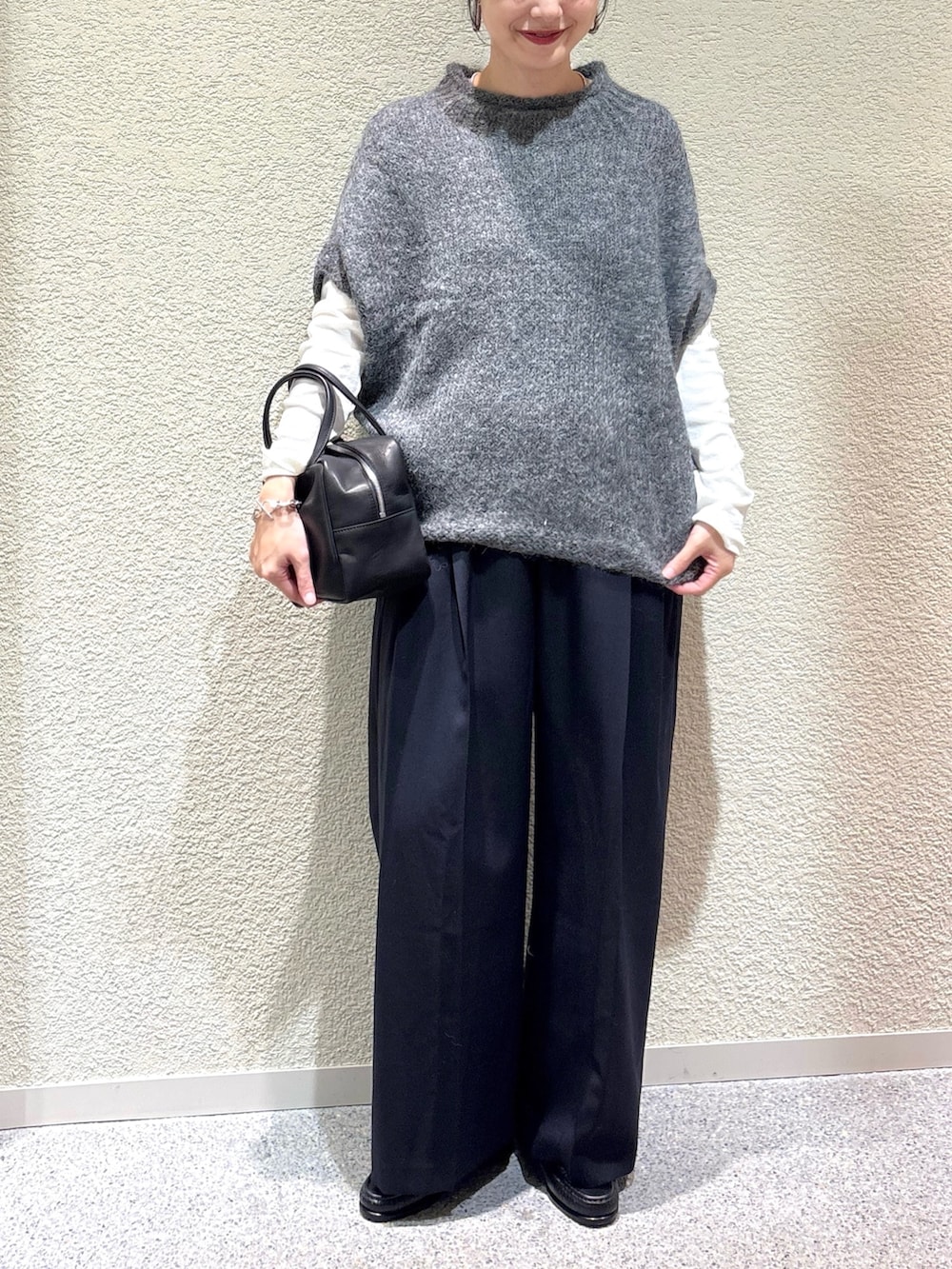 ふんわりとしたアルパカ混の素材がやさしい印象のニットベスト。ゆったりとしたシルエットで、カットソーやシャツとのレイヤードにもぴったり。軽やかでありながら温かみのある風合いが魅力です。