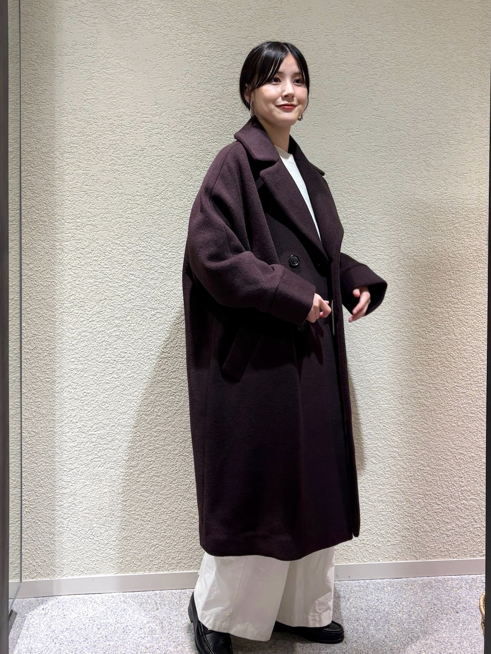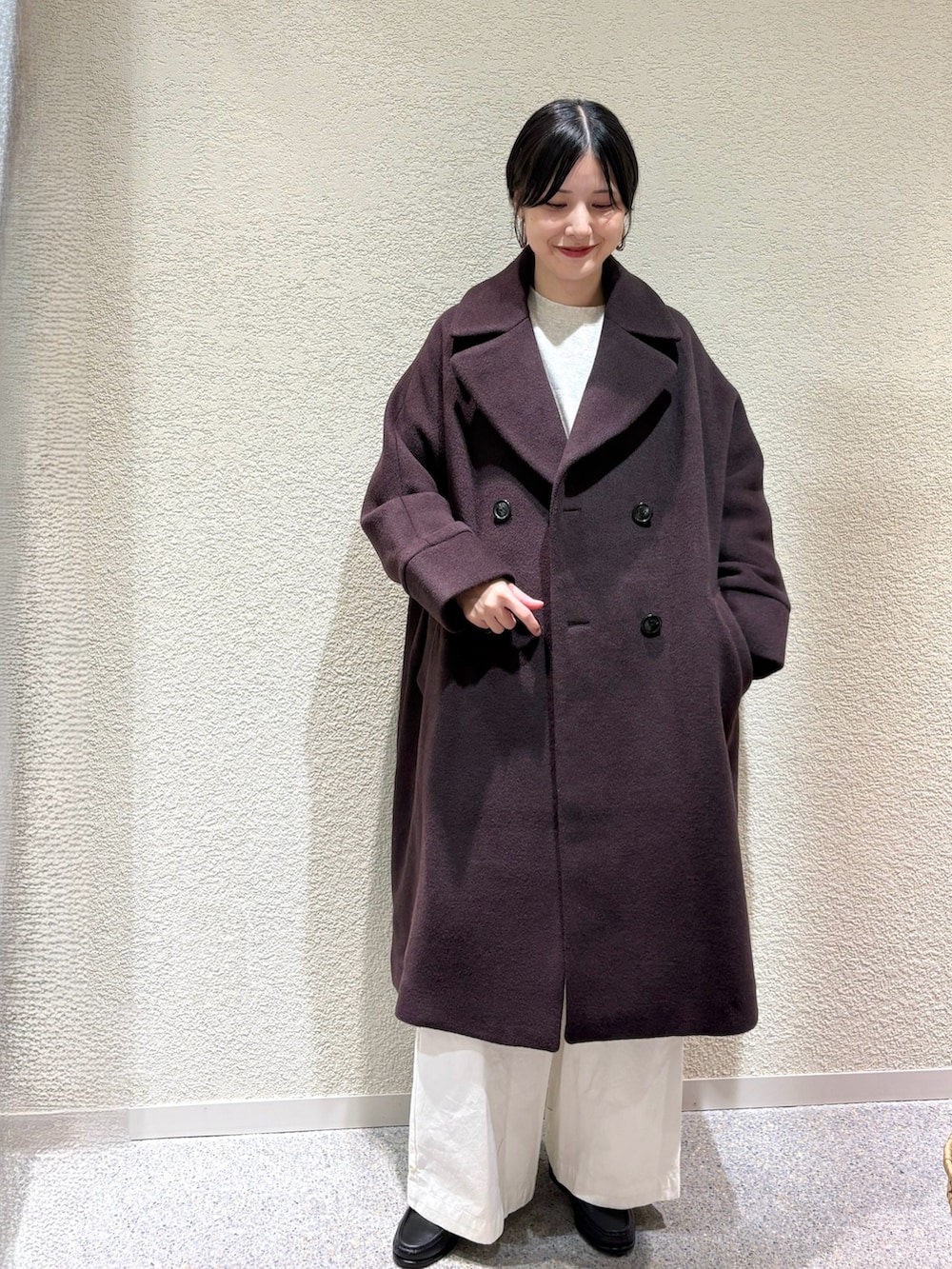 ・ボリューム感のあるコートに、軽やかなスウェットを合わせて抜け感を演出。