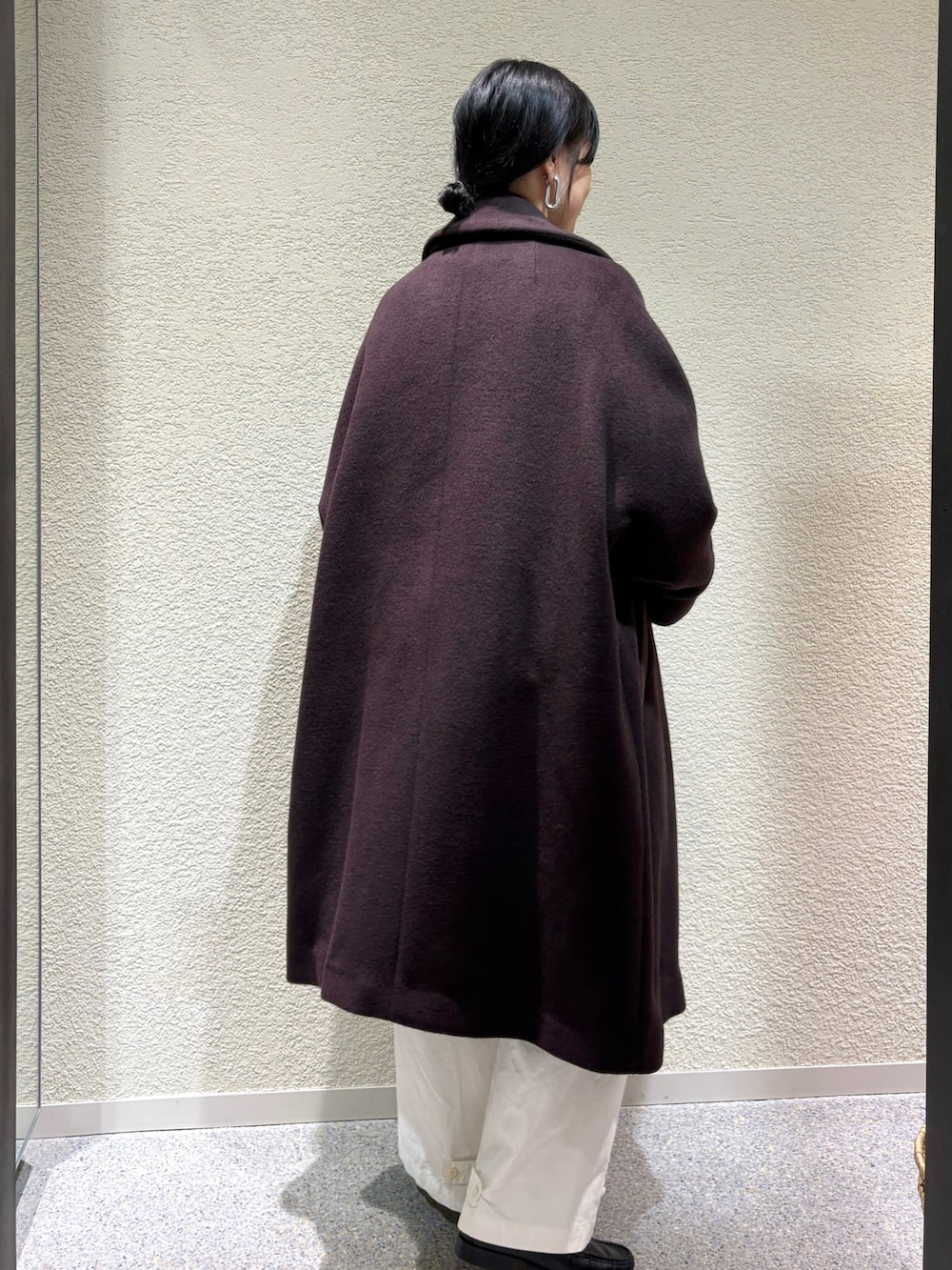 たっぷりとしたシルエットが特徴のテントコート。上質なウール混素材で、程よいハリ感と落ち感があり、動くたびに美しいドレープを描きます。ブラウンの柔らかい色味が季節感を引き立て、羽織るだけでこなれた印象に。