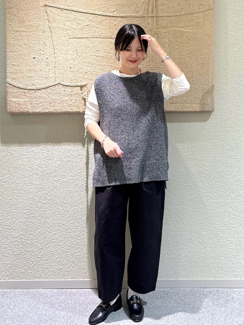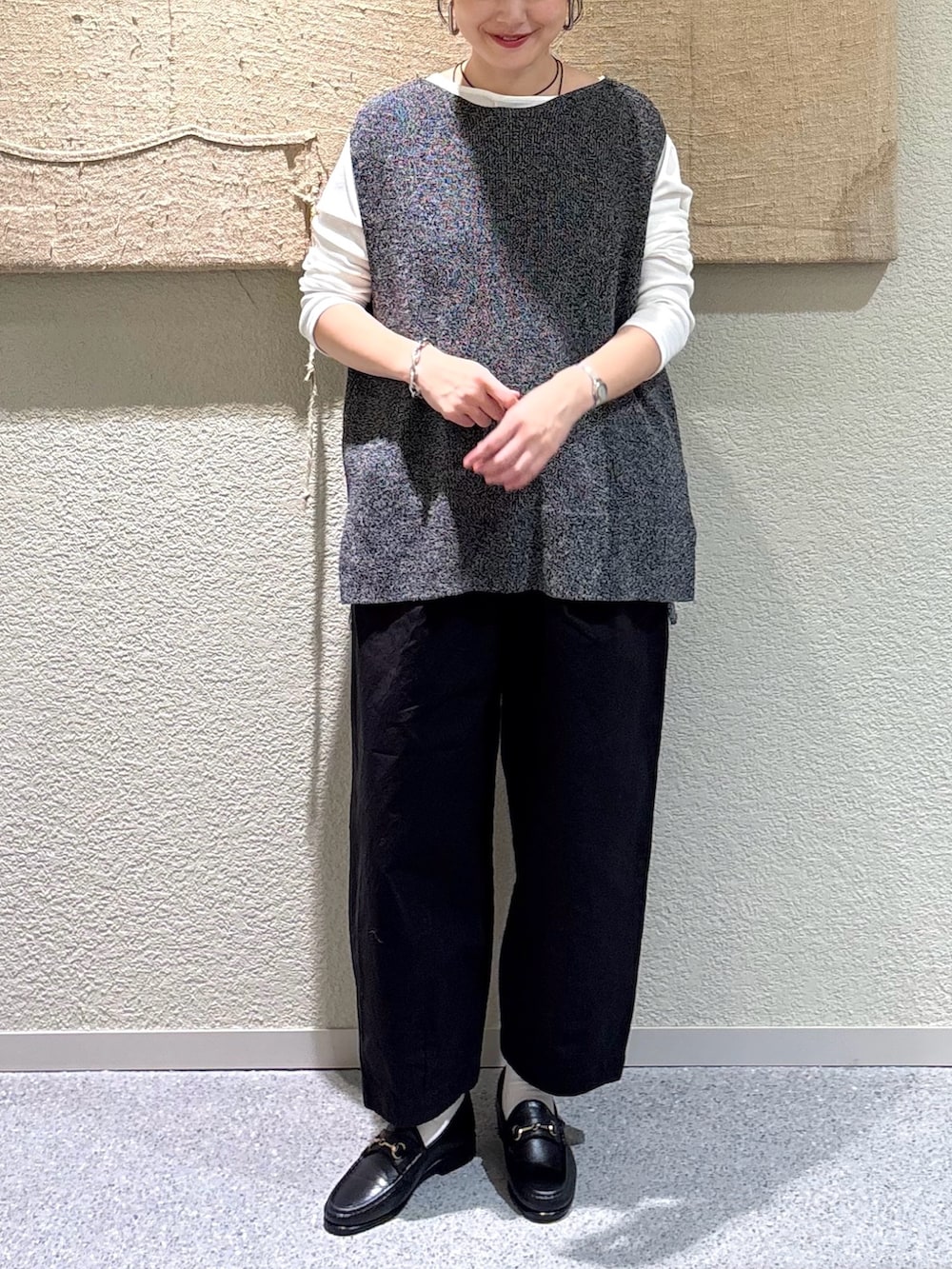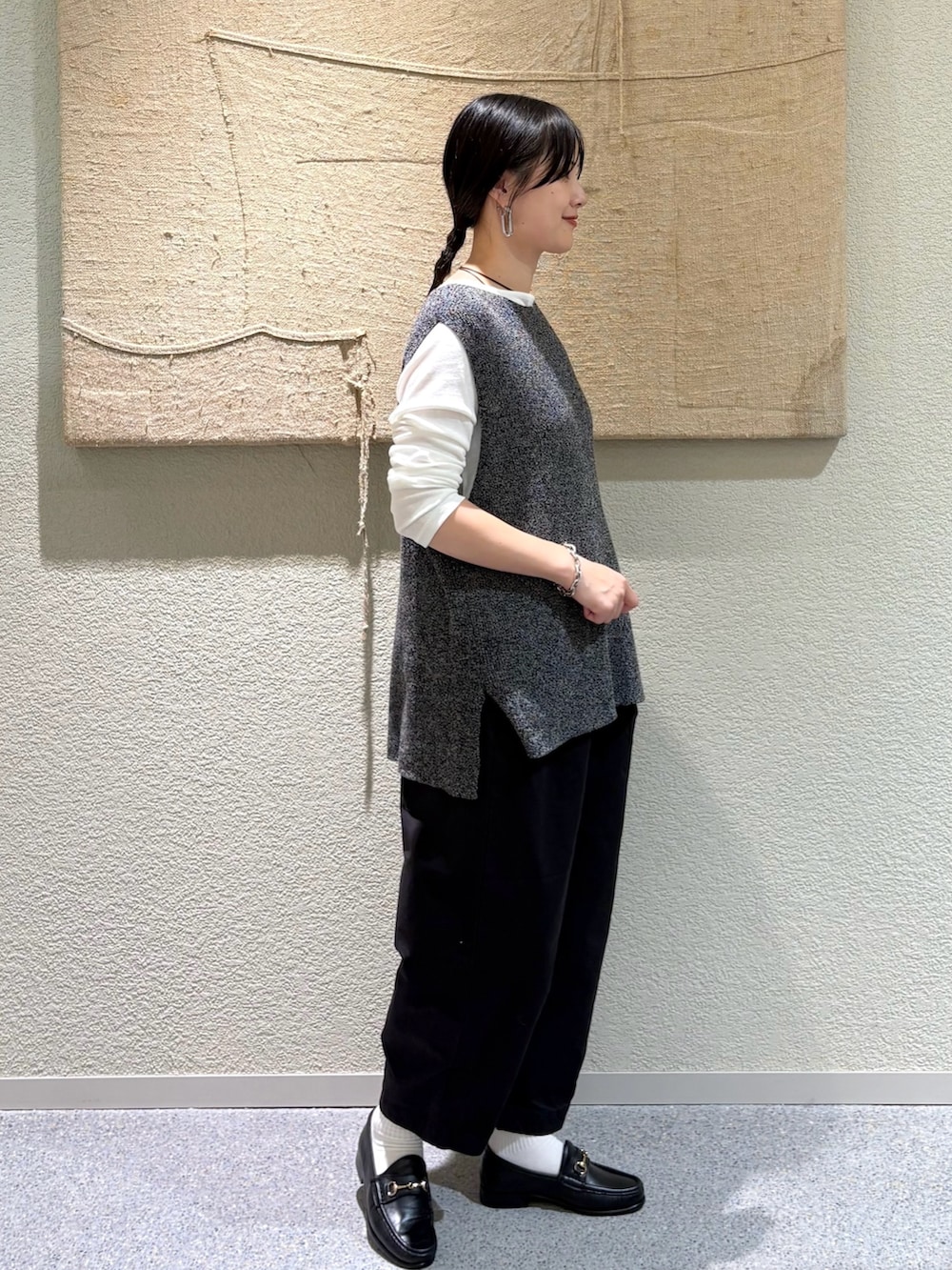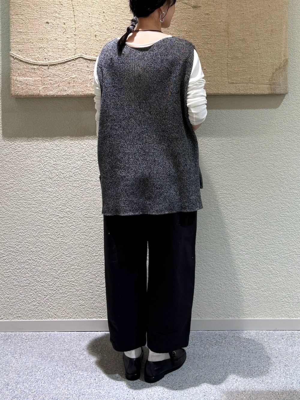 さらりとした質感のドライコットンニットベスト。ゆとりのあるシルエットでレイヤードしやすく、Tシャツやカットソーの上に重ねるだけで立体感のある着こなしに。グレーの柔らかな色味がスタイル全体を落ち着かせてくれます。
