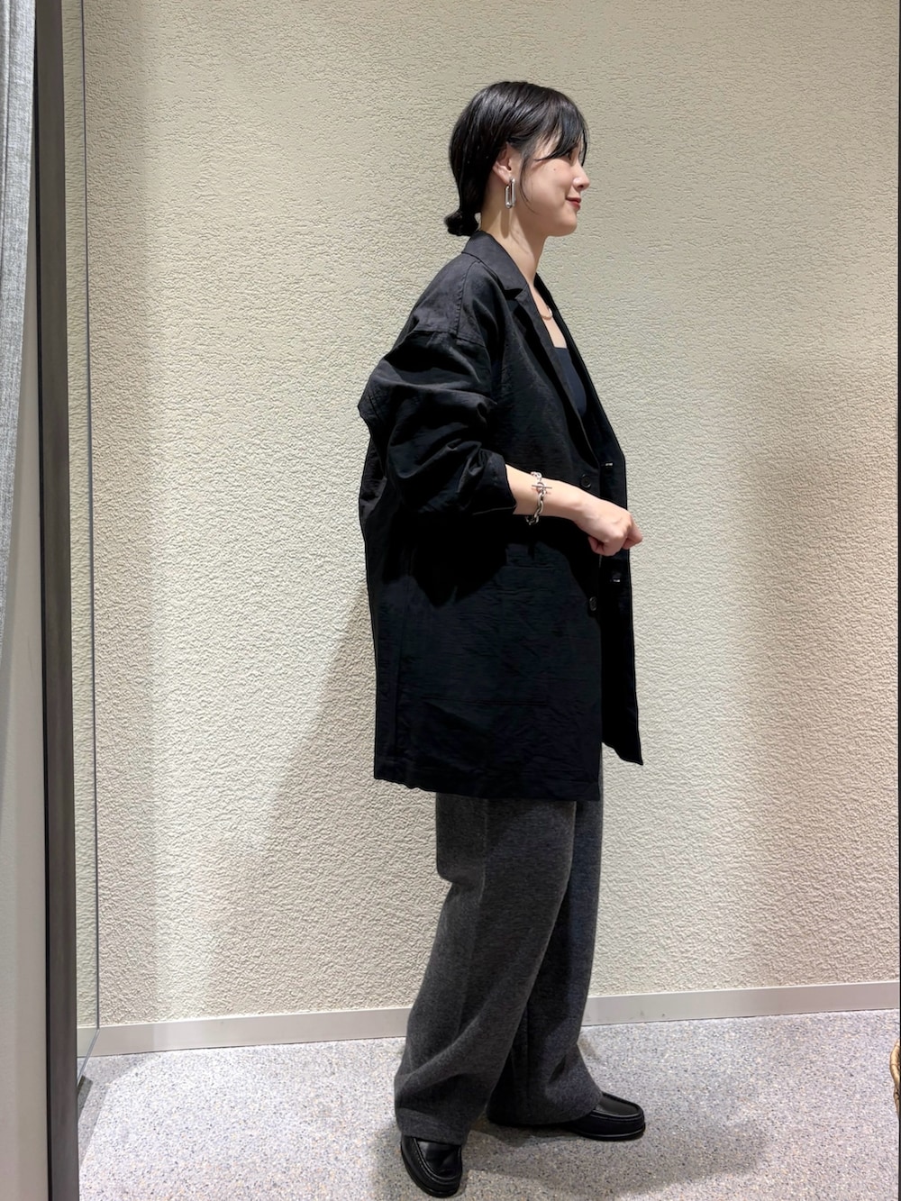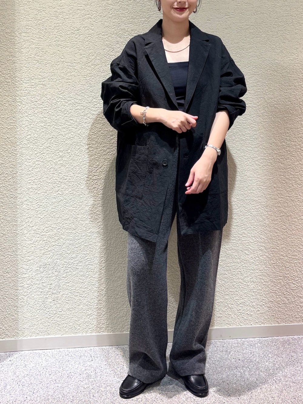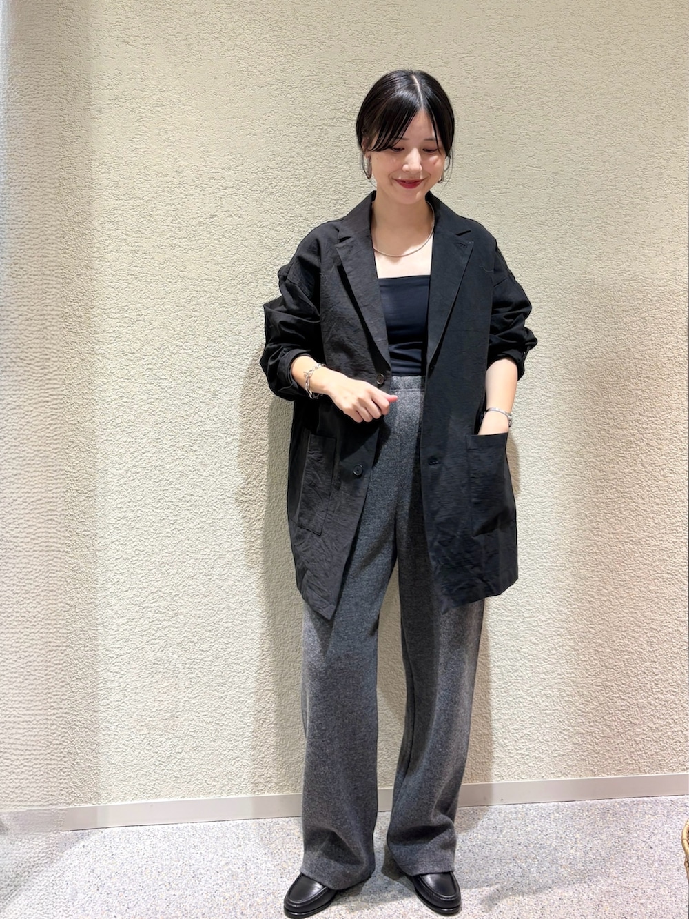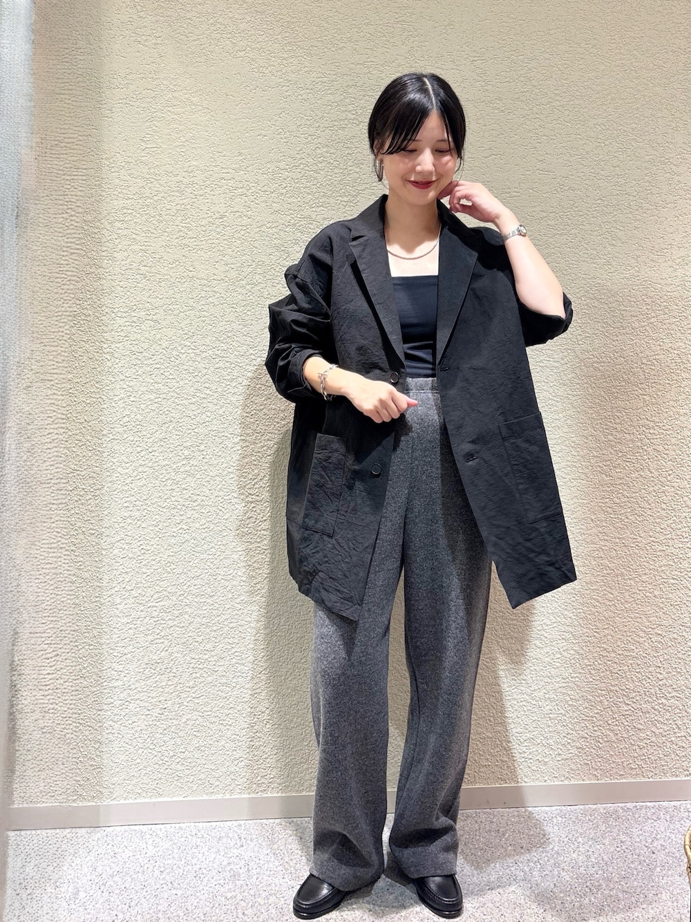 ・ブラック×チャコールのシックな配色で大人のミニマルスタイルに