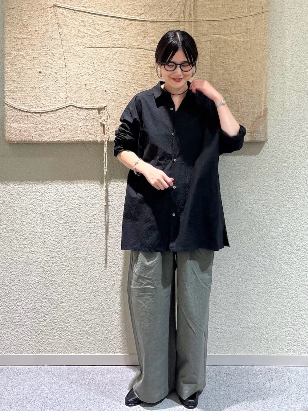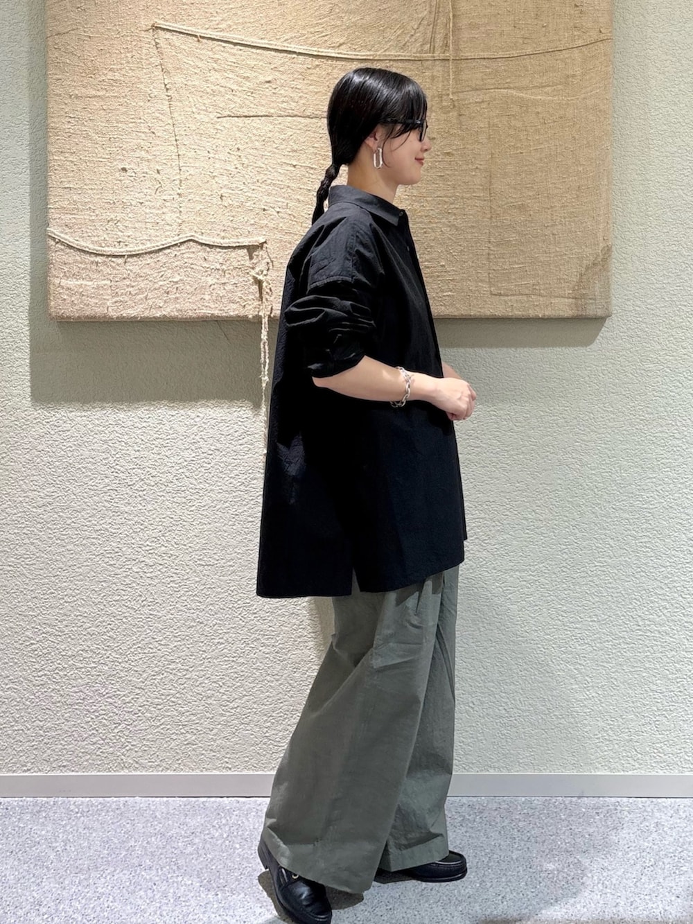 ・ボックスシルエットのシャツをタックインしてバランス良く