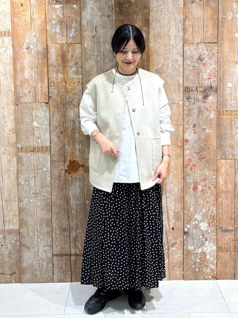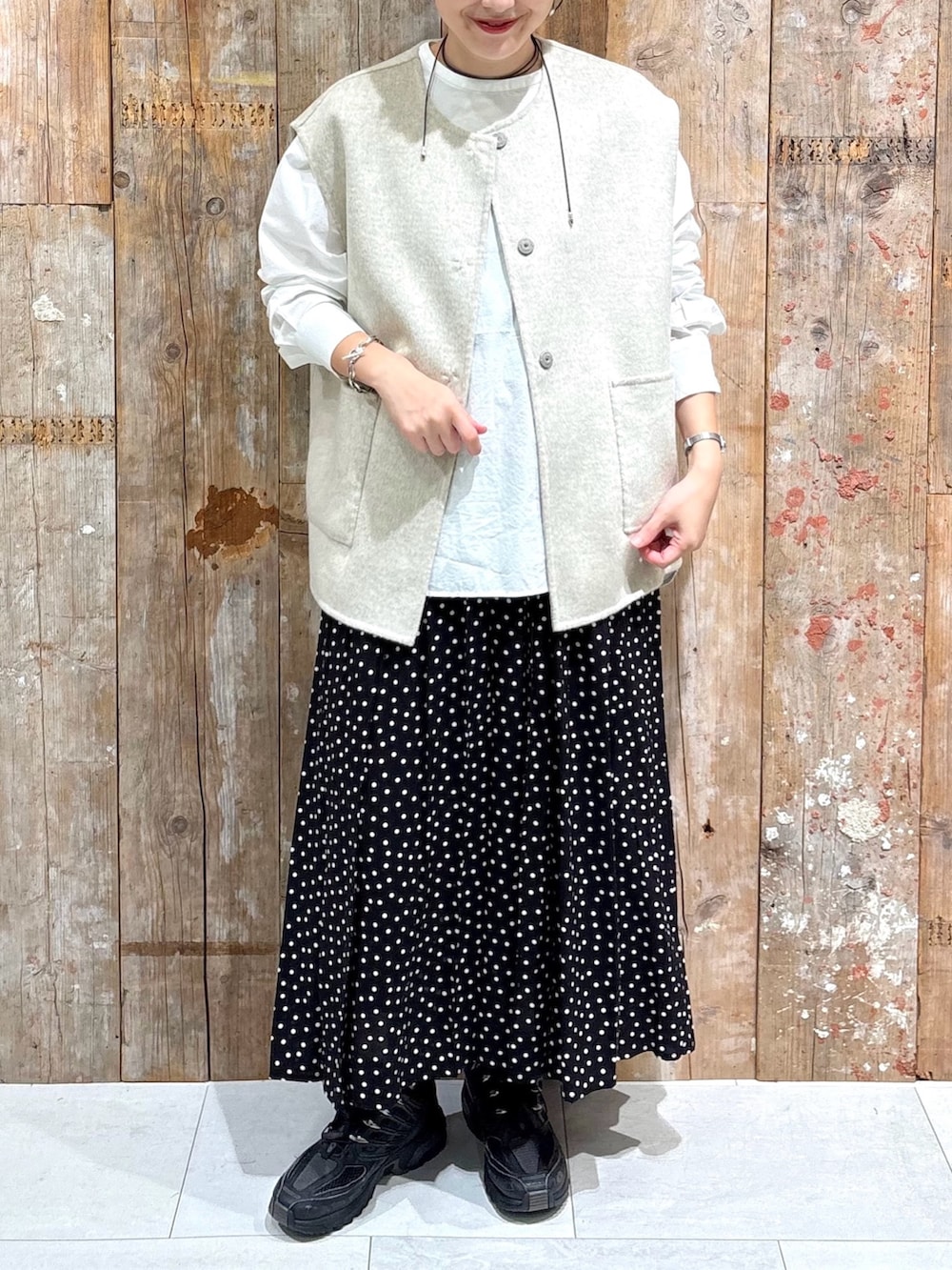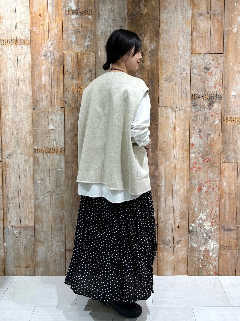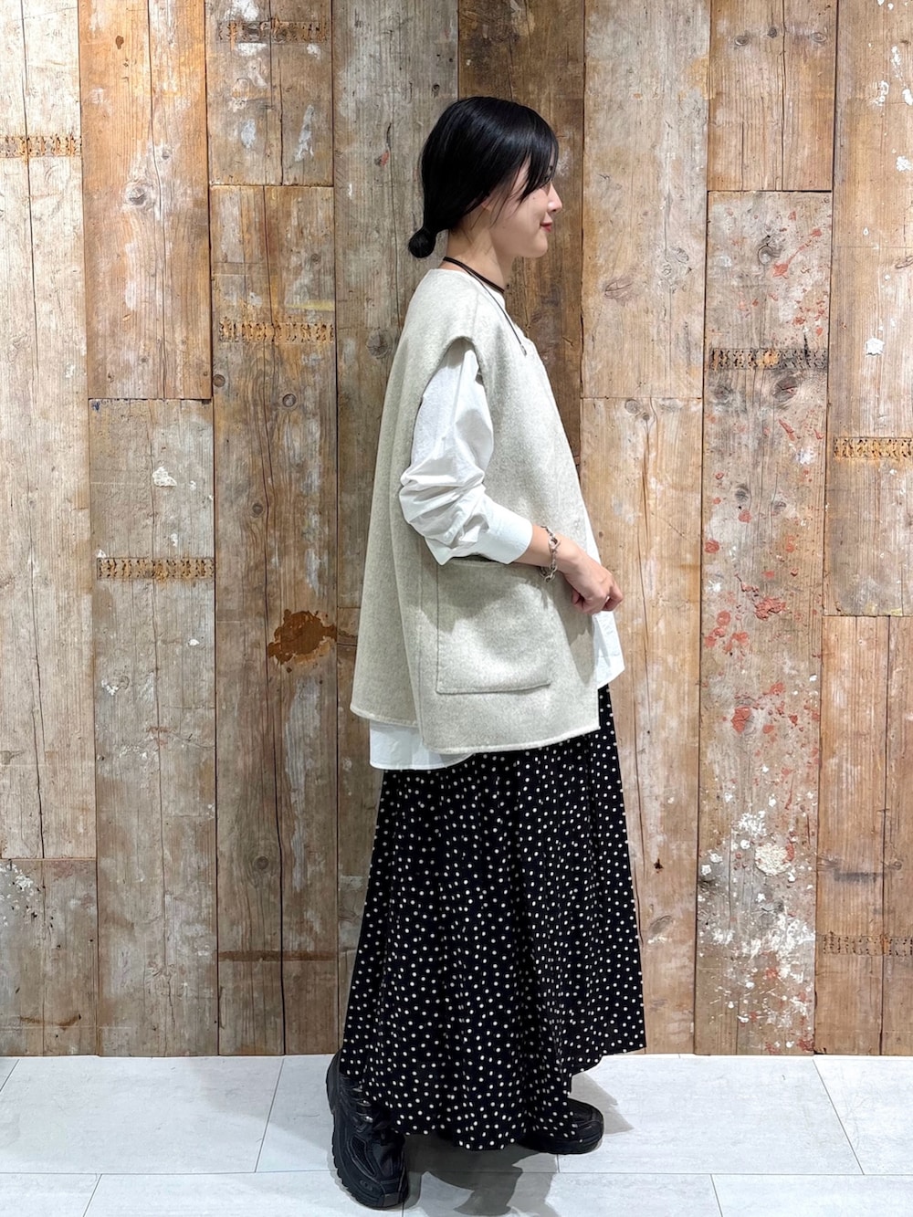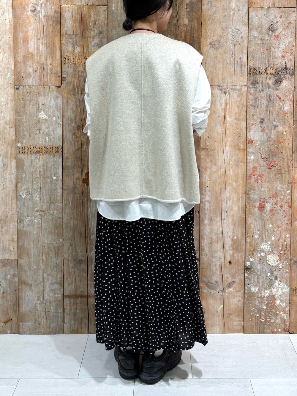 ・白シャツ×オートミールベストの柔らかな配色でナチュラルな印象に