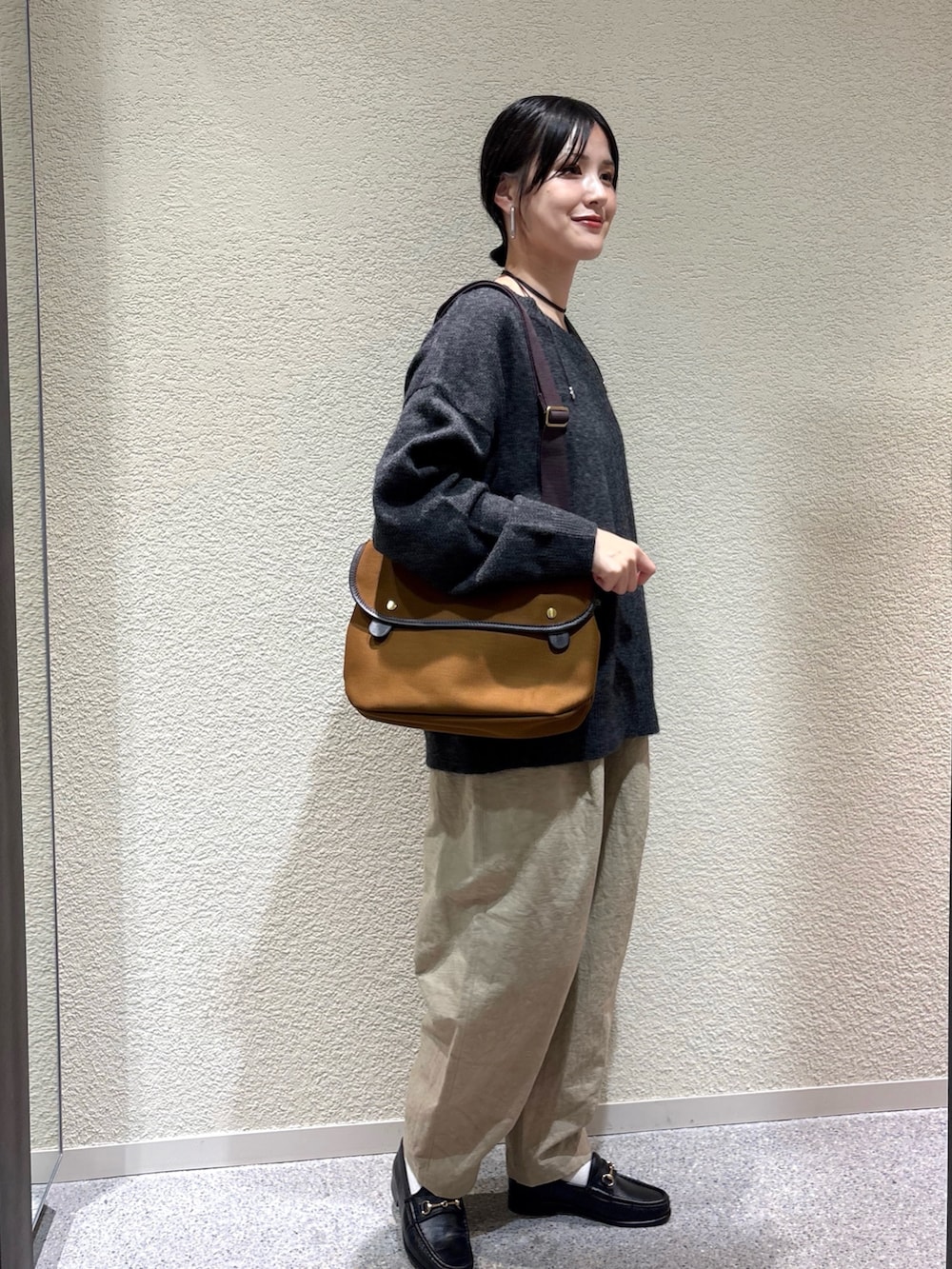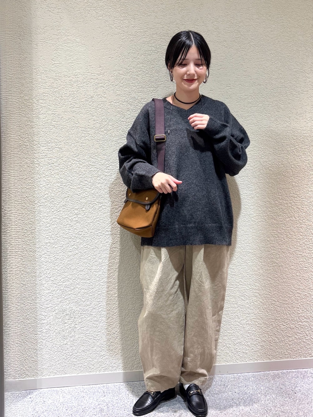 ・チャコール×ベージュの配色で、シックで洗練されたナチュラルスタイルに。