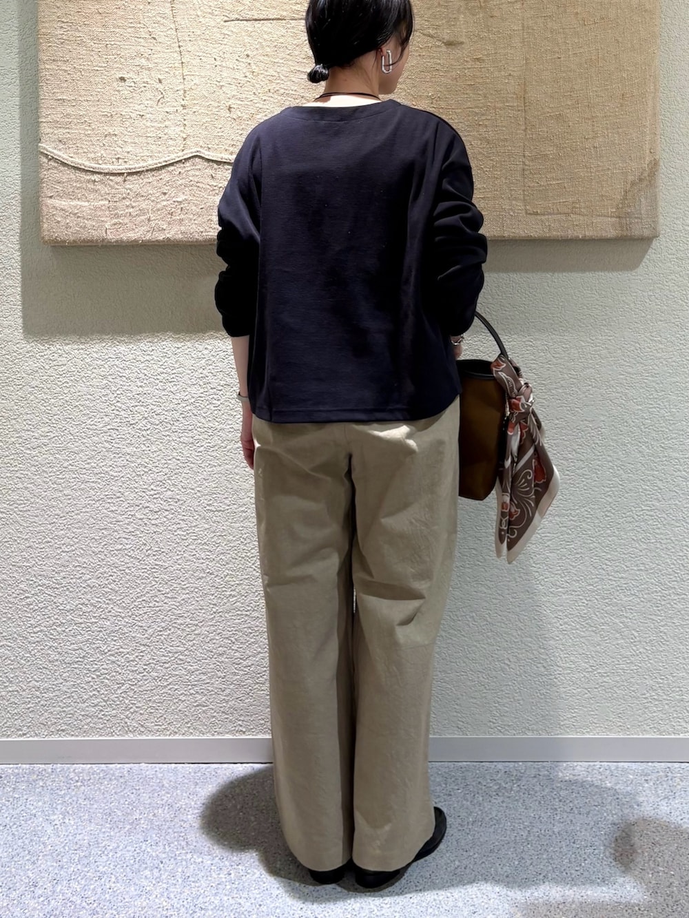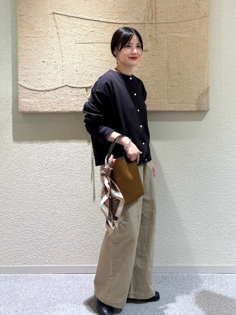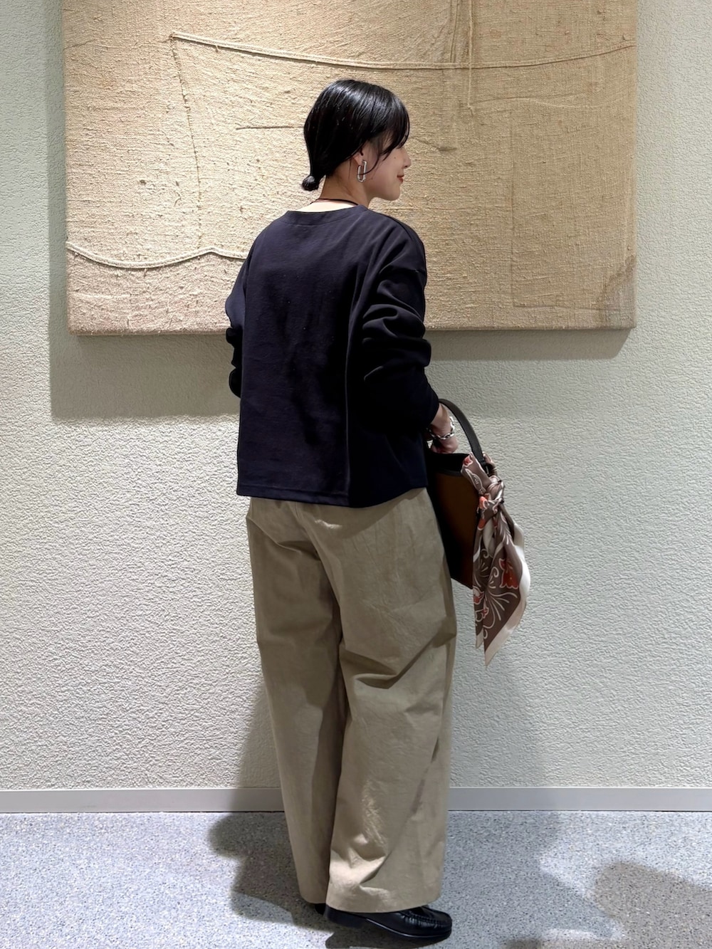 ・モノトーンベースのシンプルな着こなしで、上品なリラックス感を演出。