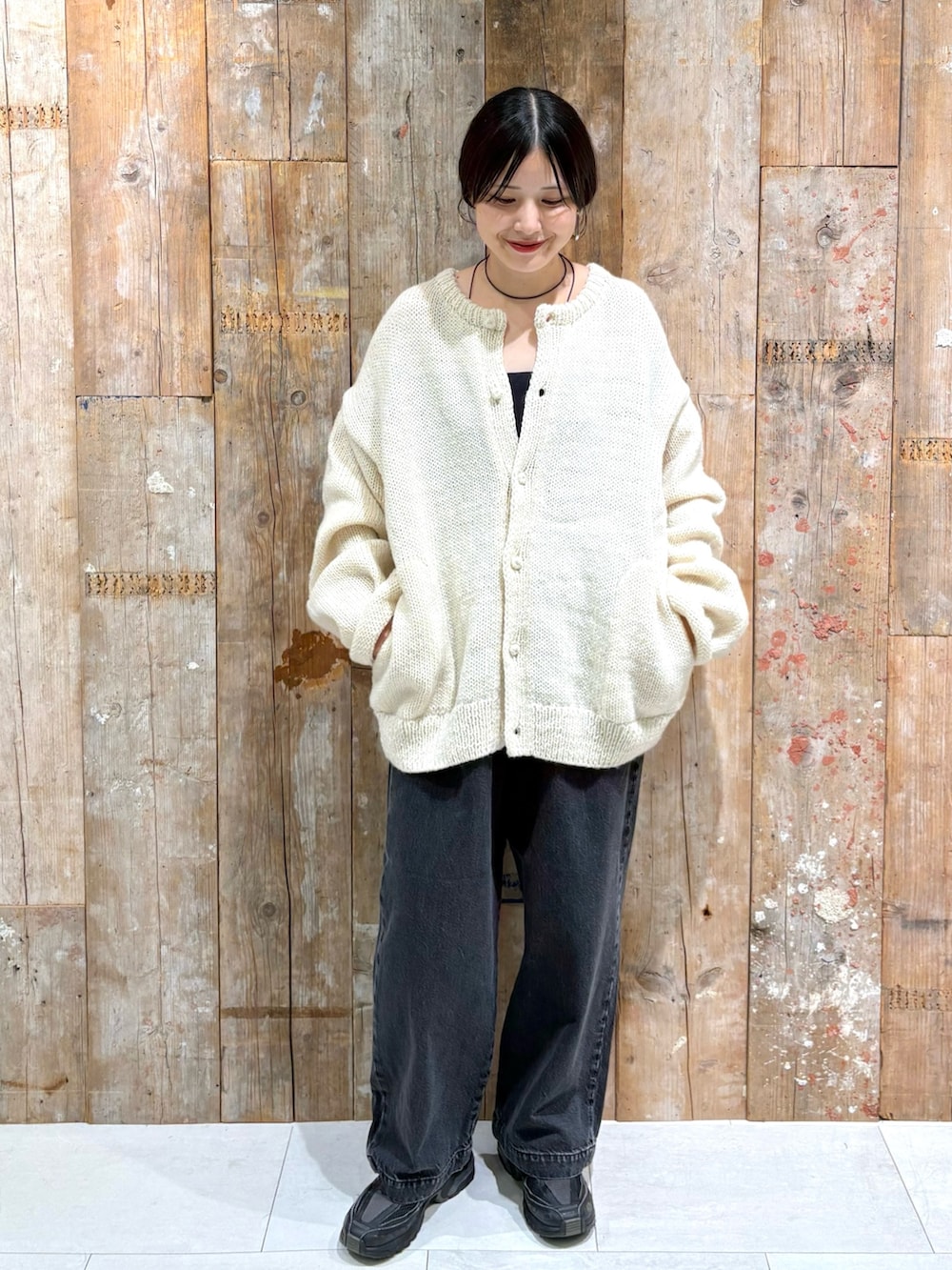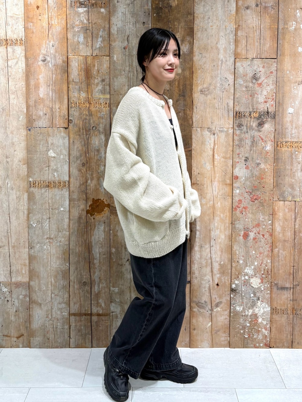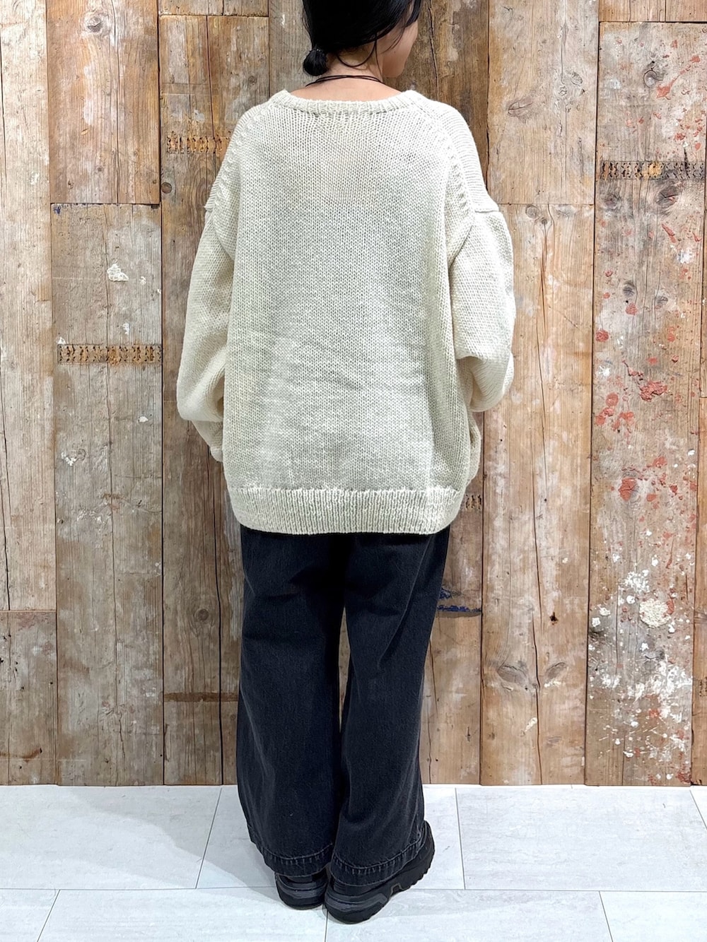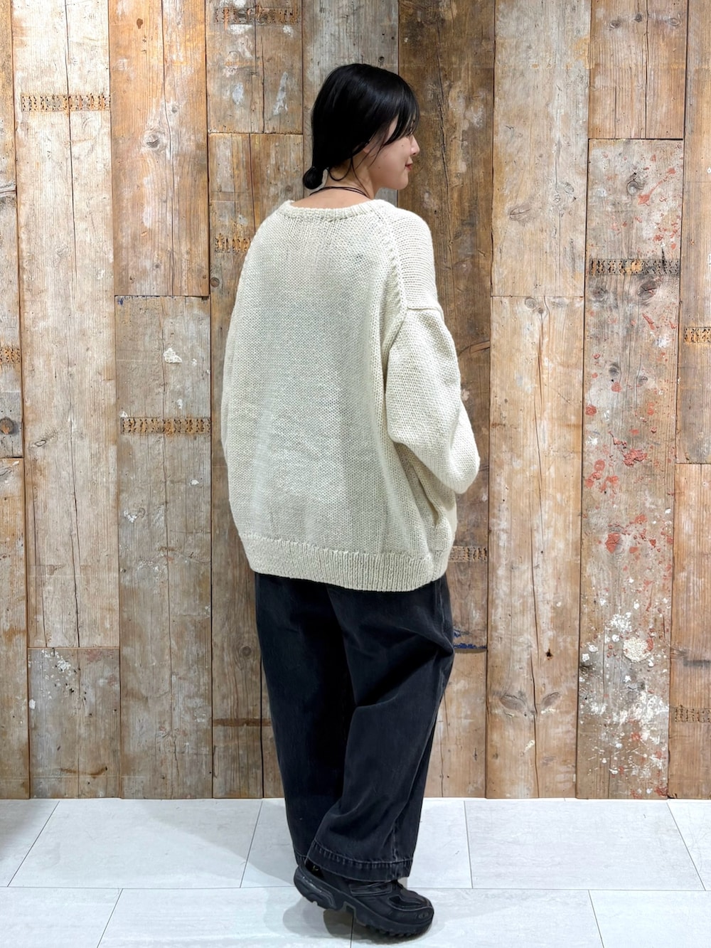 ・ざっくりとしたニットの風合いが、シンプルながら存在感をプラス。