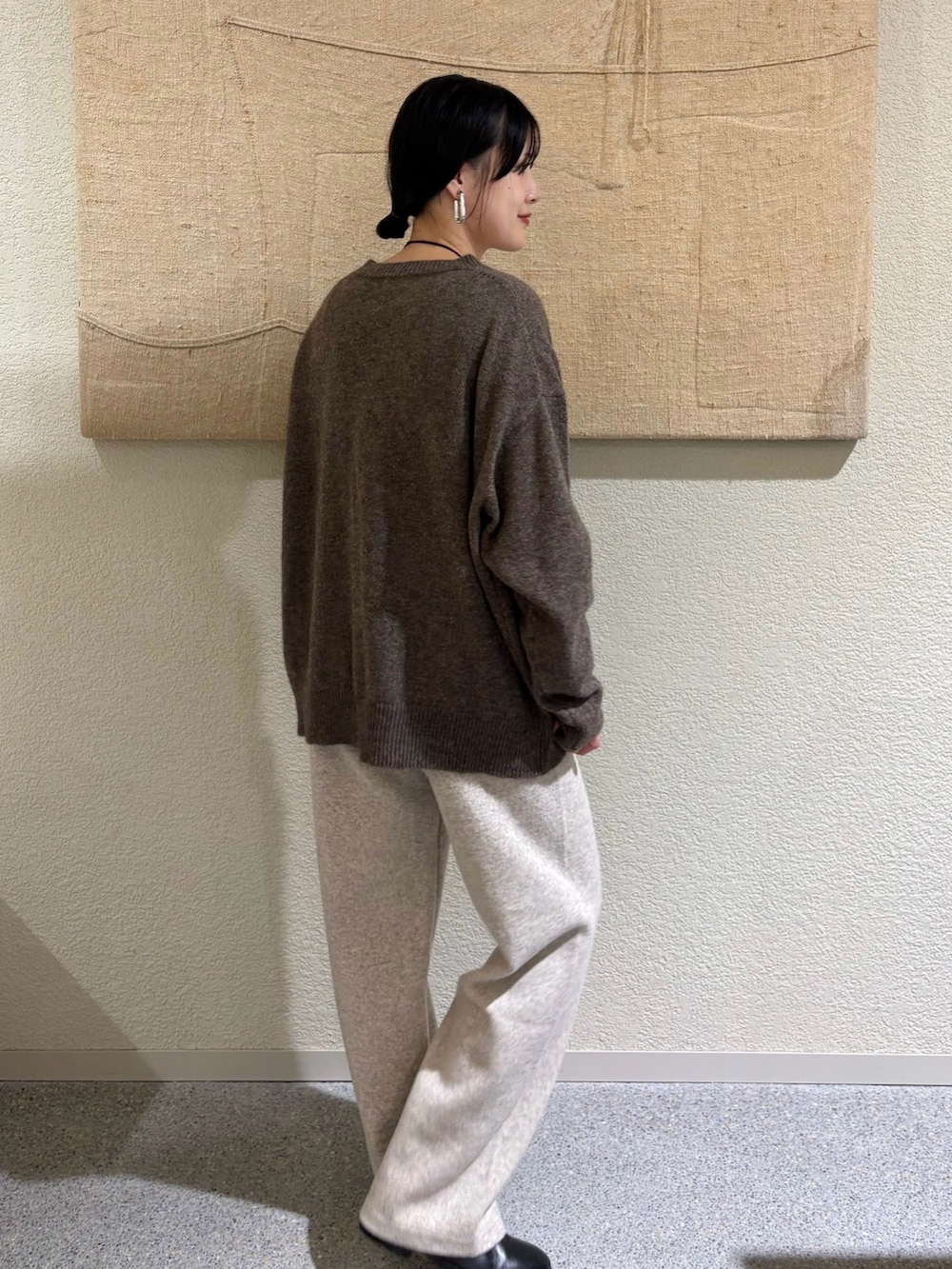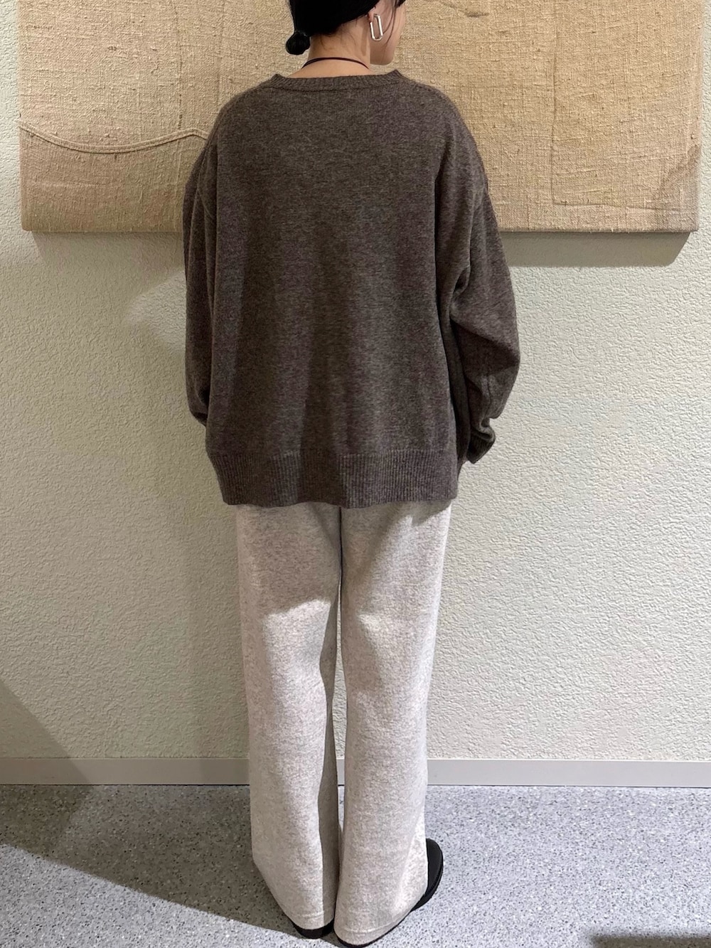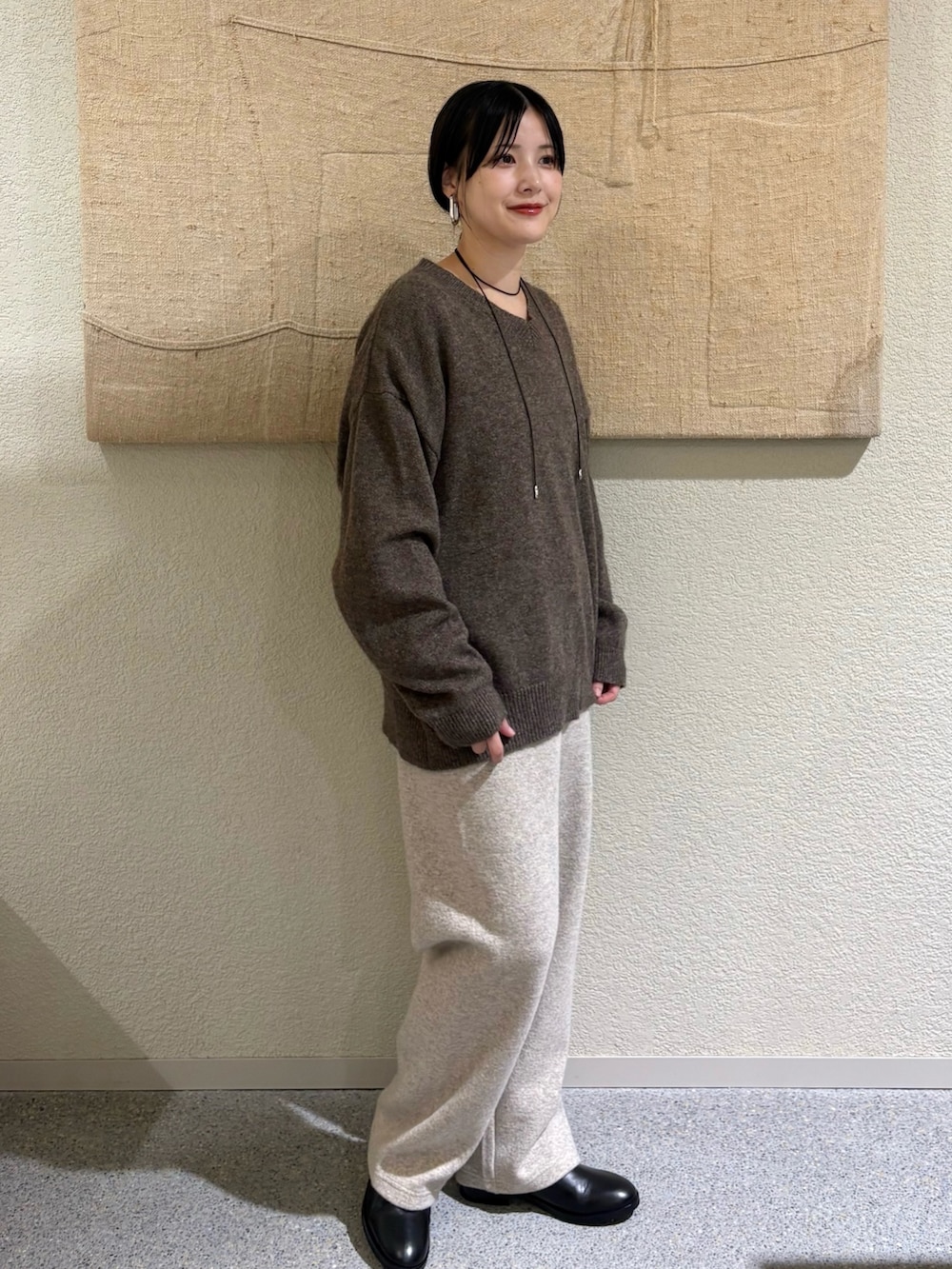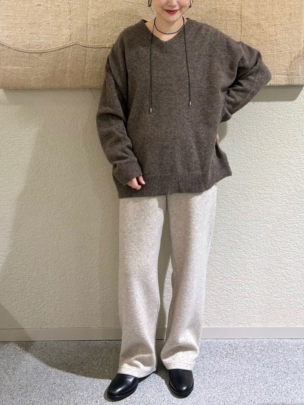 柔らかく上質なヤクウールを使用したVネックニット。軽さと保温性を兼ね備えた素材で、優しい肌触りが魅力です。深すぎないVネックが抜け感を演出しつつも上品にまとまり、1枚でもレイヤードでも活躍します。モカの温かみあるトーンが秋冬らしい雰囲気を引き立てます。