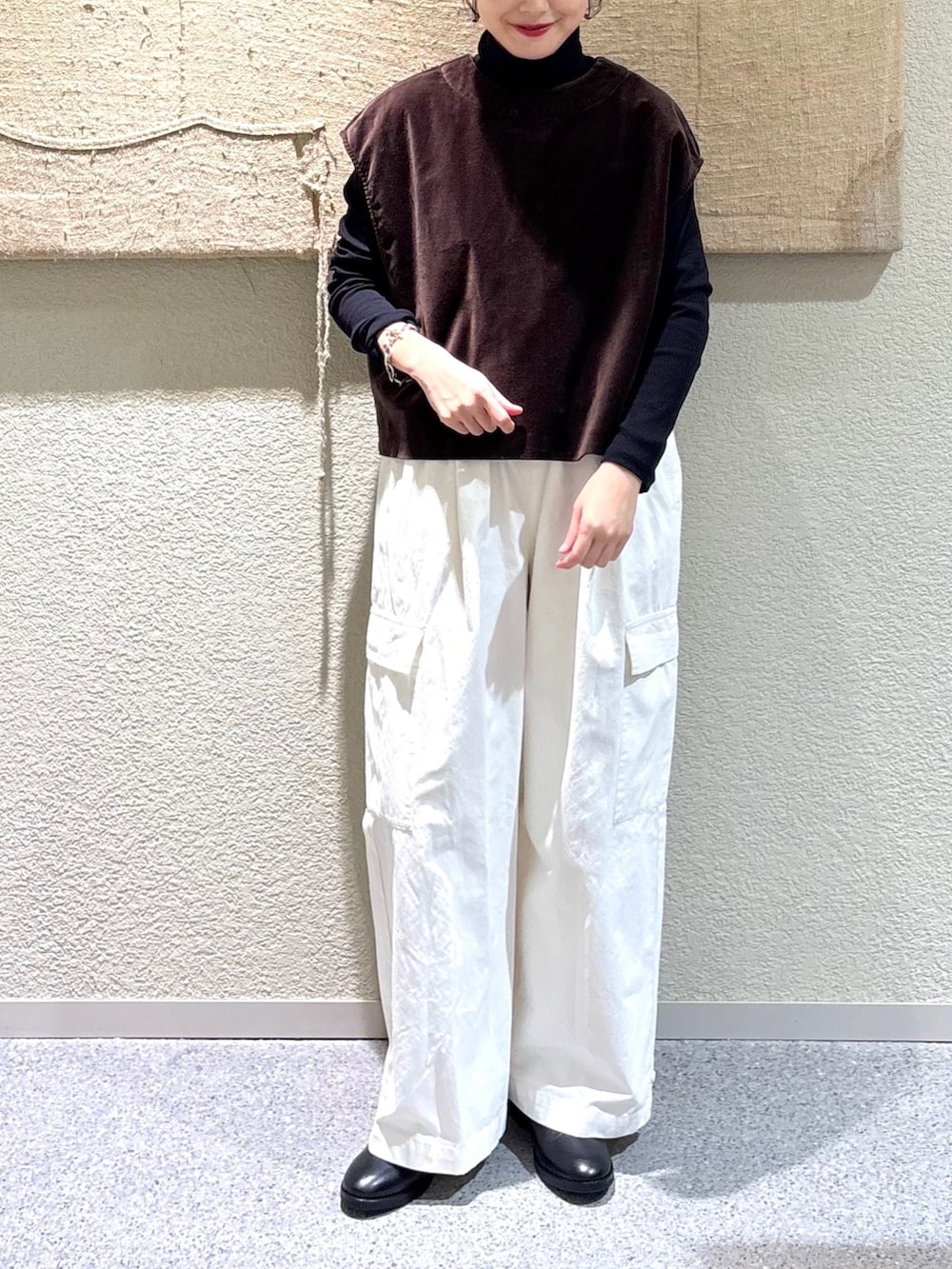・異素材の組み合わせで奥行きのあるコーディネートに