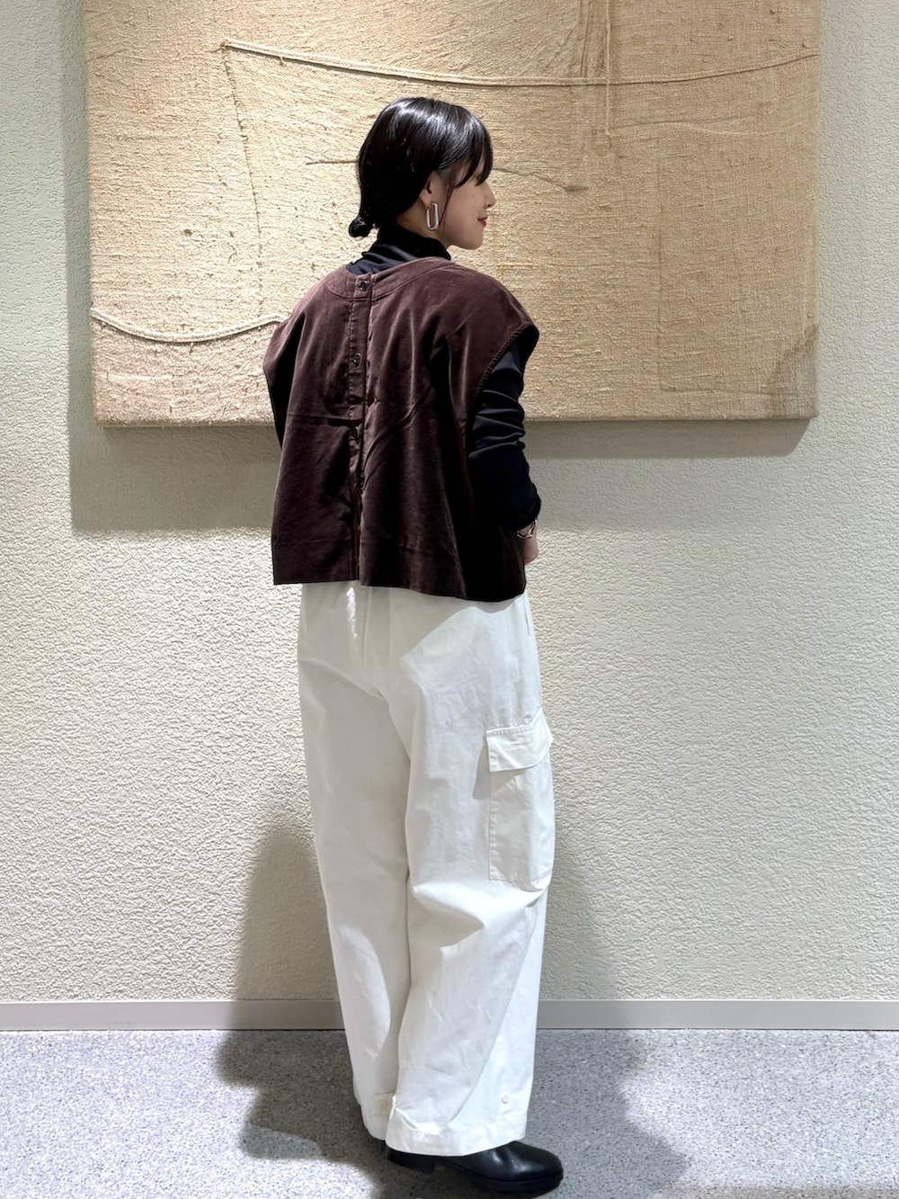 柔らかなコットンベルベット素材で仕立てた上品なベスト。前後2WAY仕様で、シーンや気分に合わせて着こなしを楽しめます。ほどよい光沢感がスタイリングに深みをプラスし、秋冬らしい温もりを演出します。