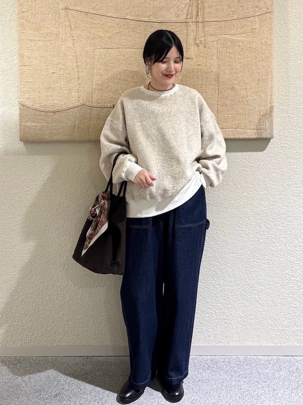 ・ナチュラルなベージュ×インディゴで季節感あるリラックススタイル