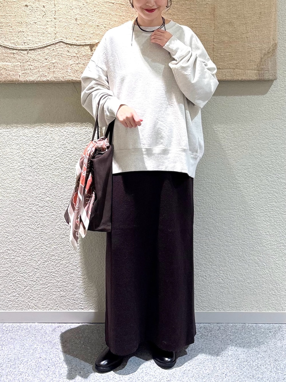 ・スウェット×ニットの異素材MIXでリラックス感の中に女性らしさをプラス
