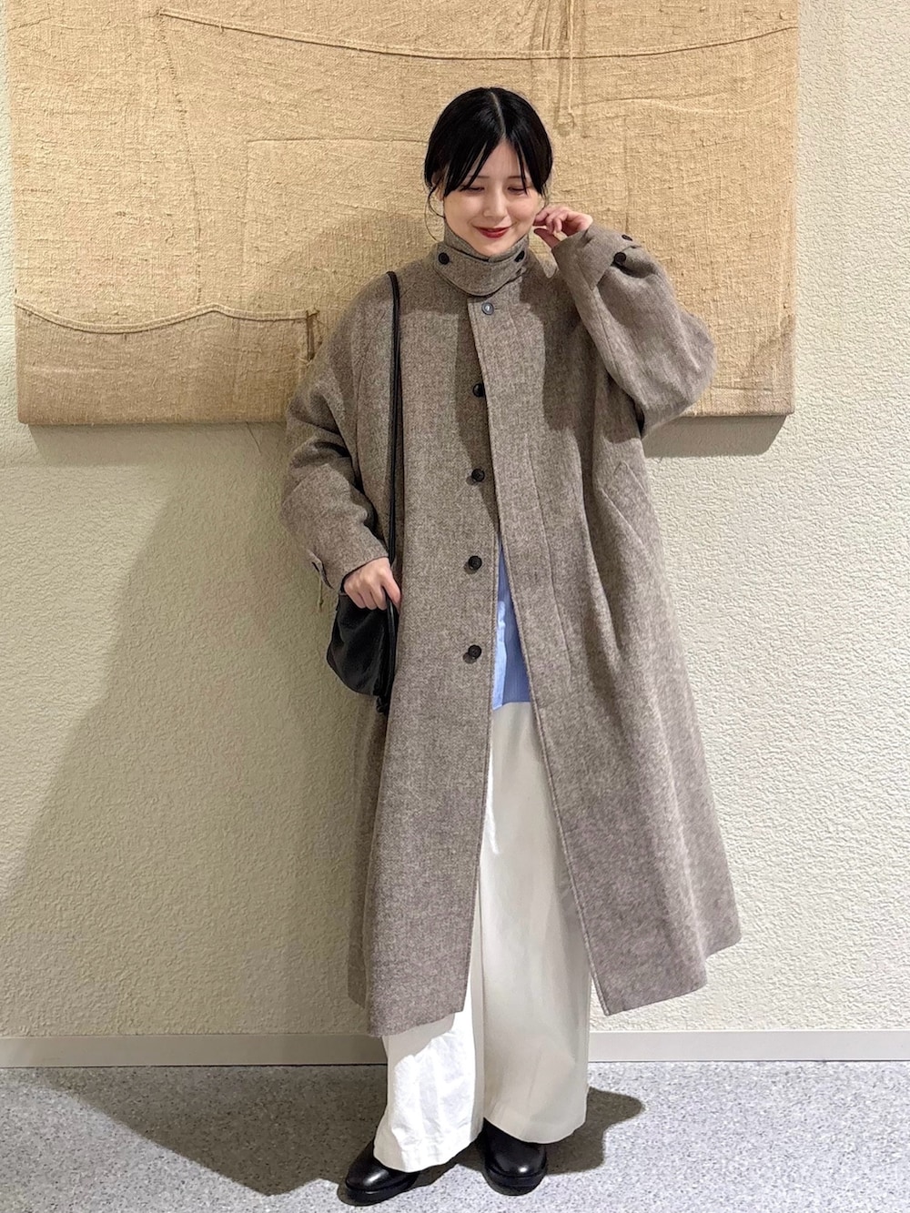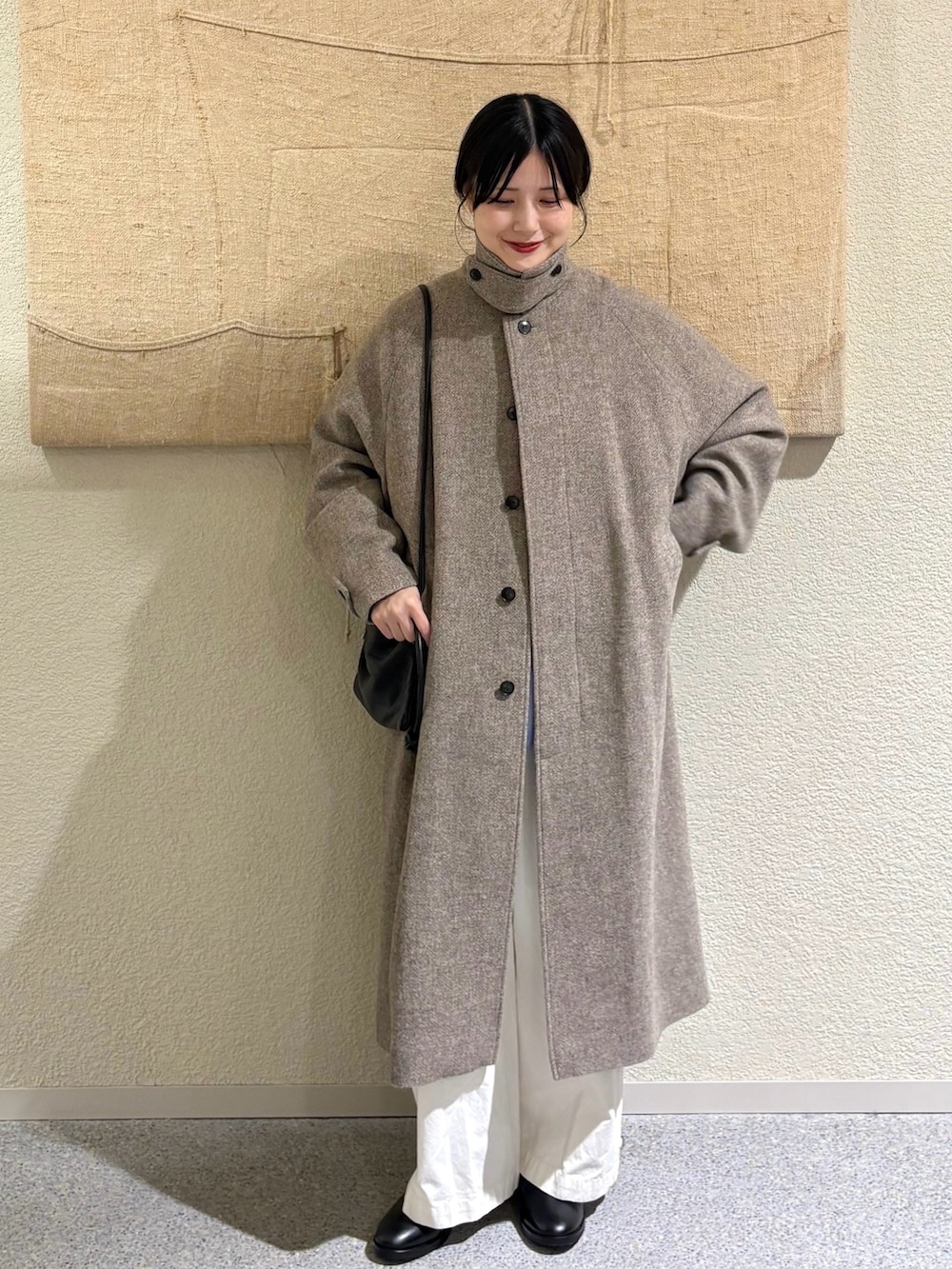ゆったりとしたシルエットが魅力のウールバルコート。上質なウール素材で仕立てられ、軽さと暖かさを両立しています。やや丸みのあるフォルムが柔らかい印象を与え、BEIGEカラーが上品でナチュラルな雰囲気を演出します。