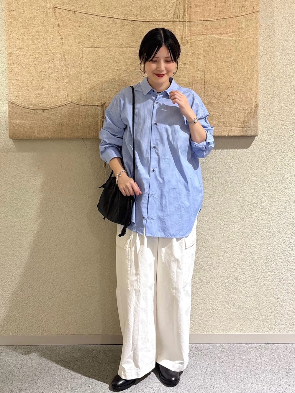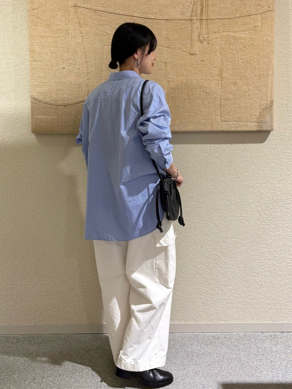 爽やかなストライプ柄が印象的なレギュラーシャツ。ほどよくハリのあるコットン素材で、きちんと感と抜け感を兼ね備えています。L.BLUEのカラーがコーディネートに清潔感をプラス。