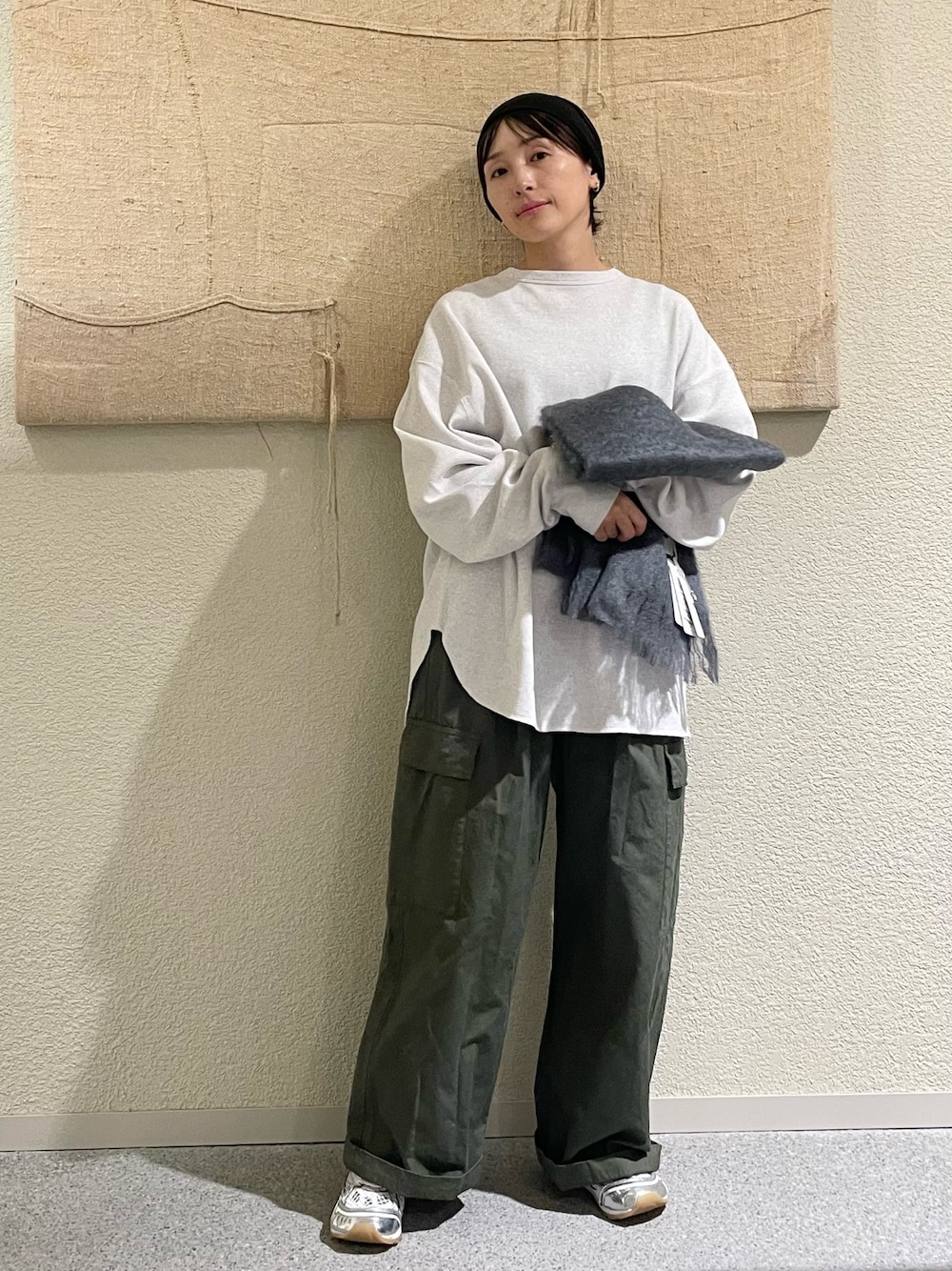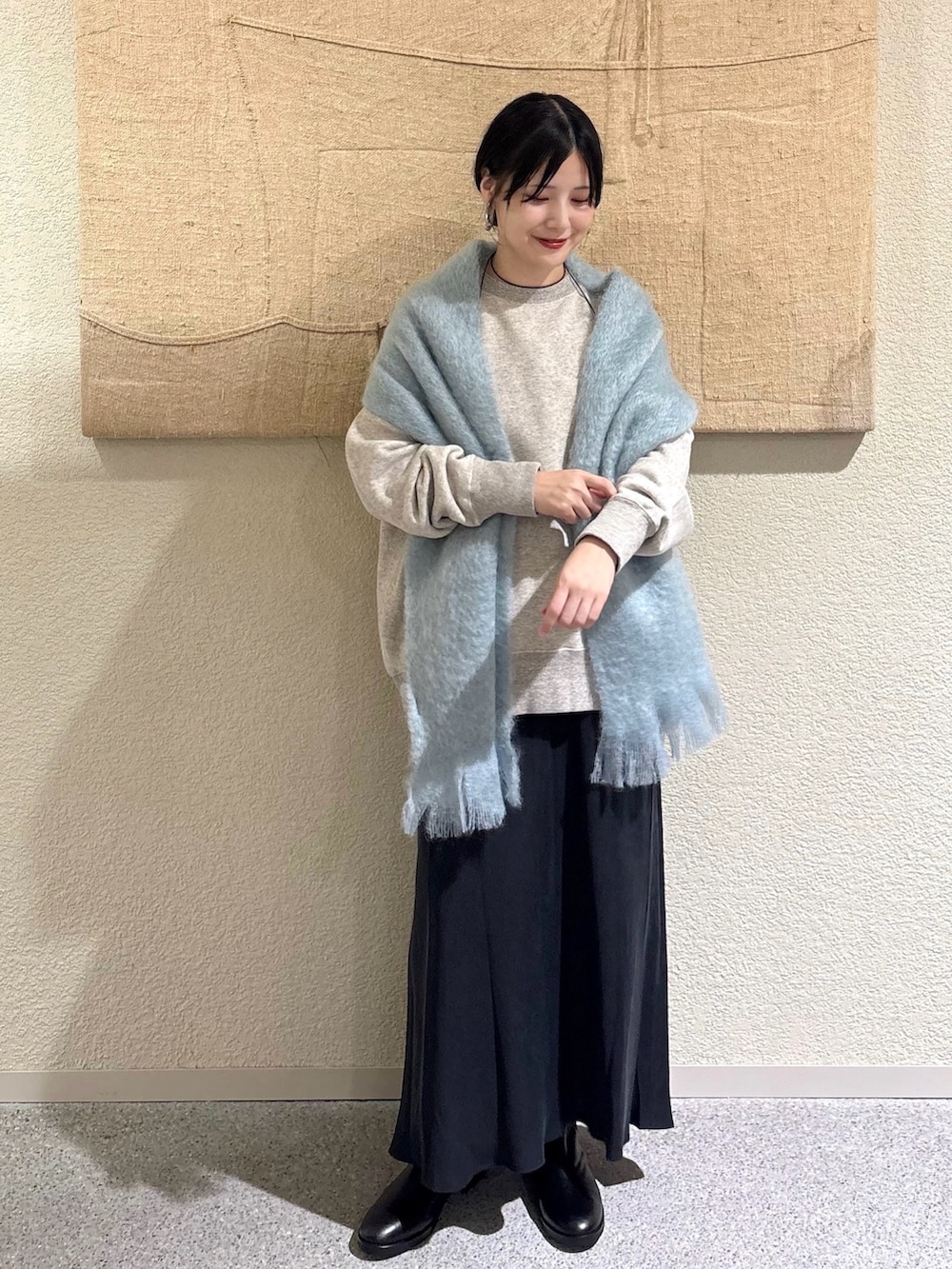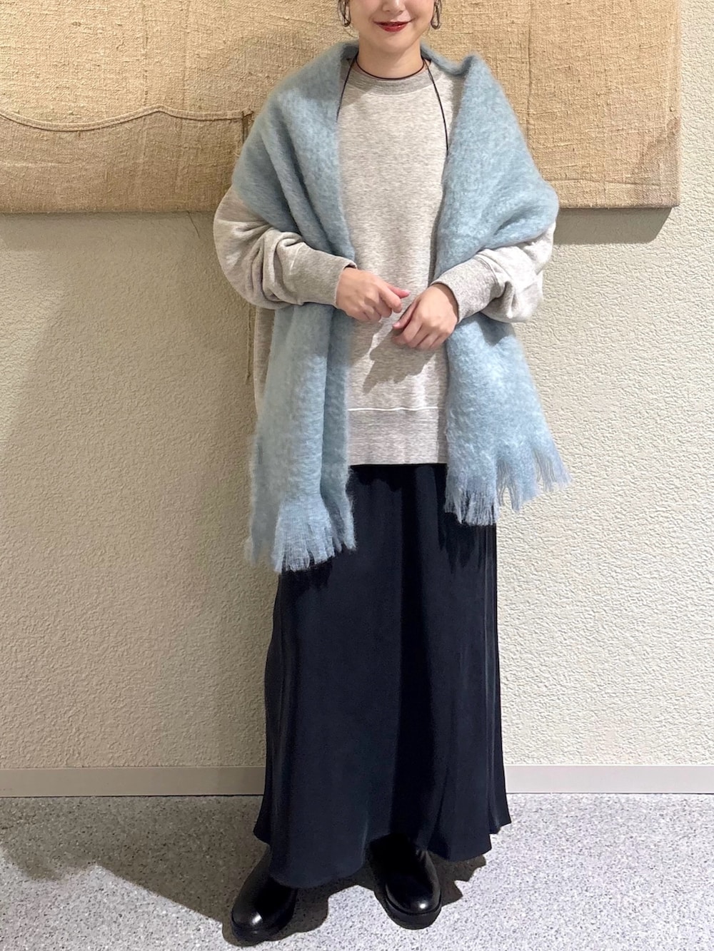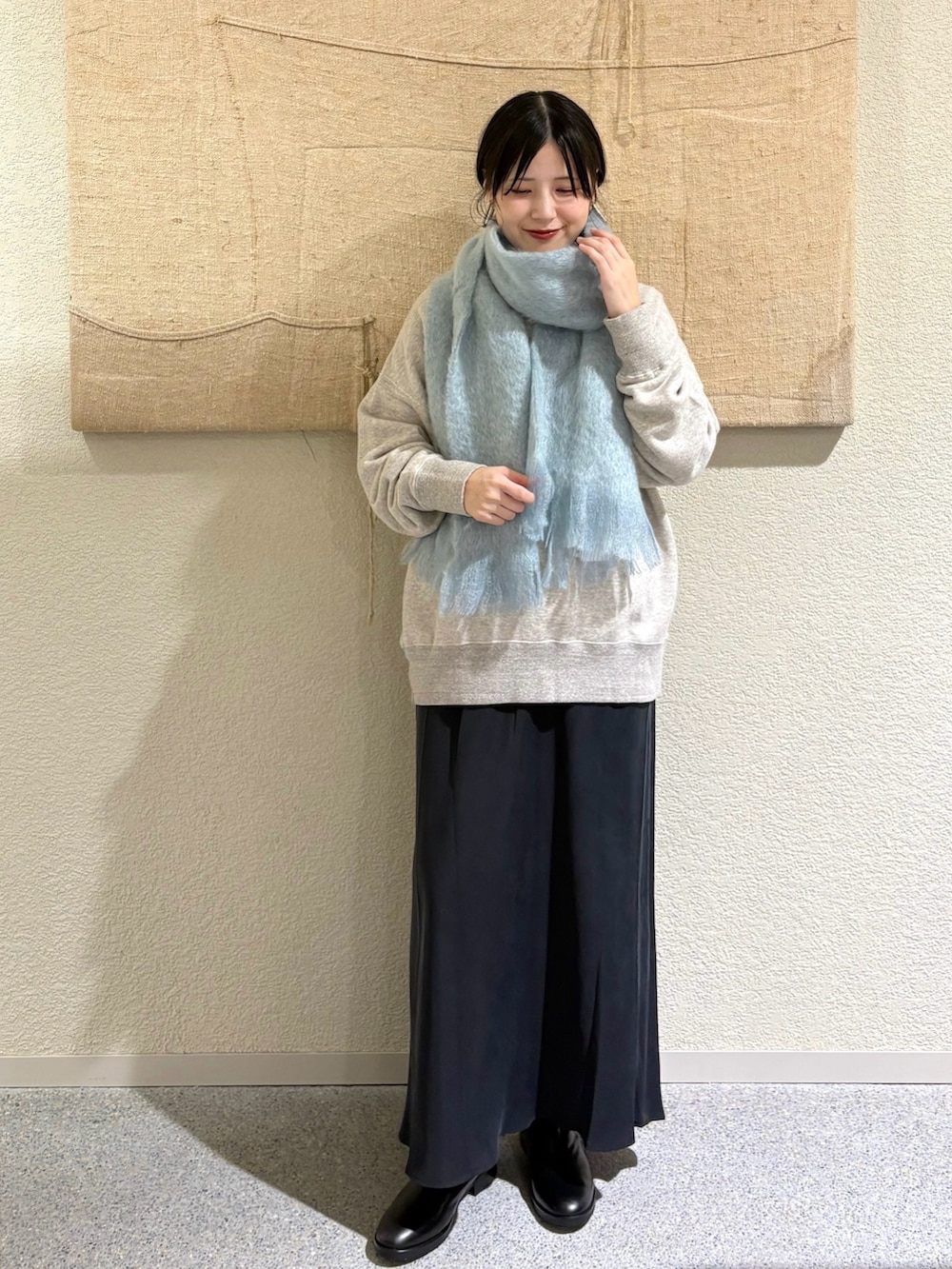 ・トップスの柔らかい質感とキュプラの上品な落ち感が好相性
