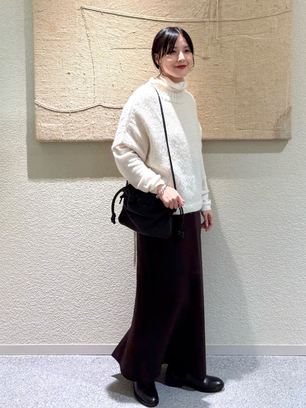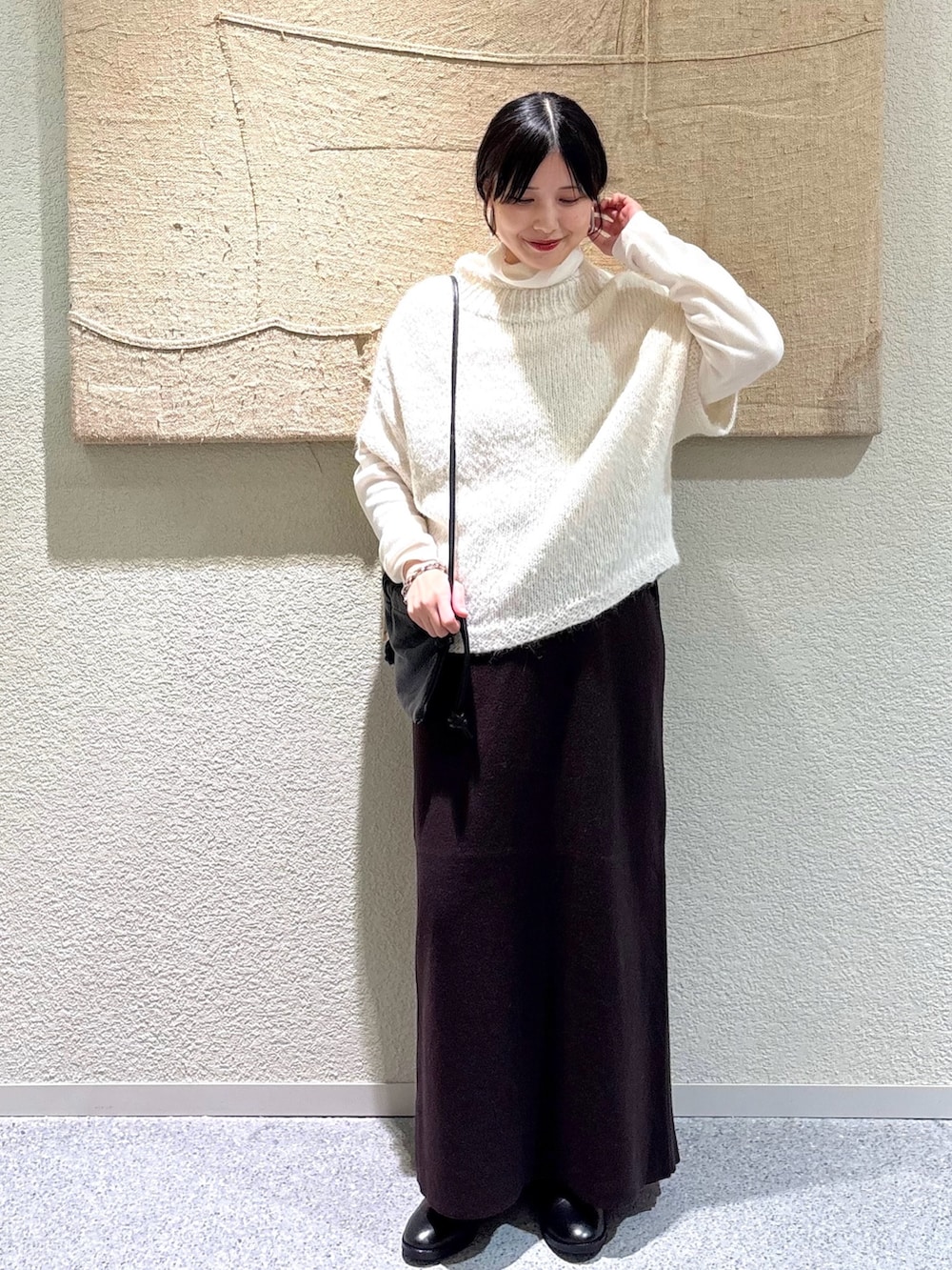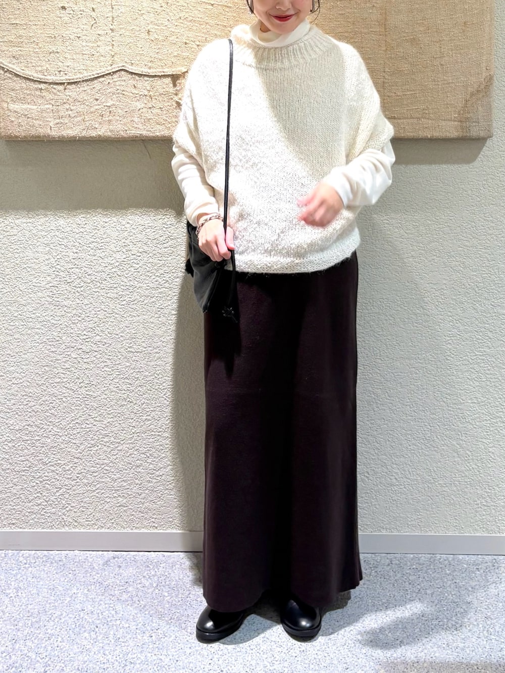 しっとりとした風合いが心地よいニットスカート。ほどよい落ち感があり、上半身のアイボリーとのコントラストで全体をやさしく引き締めてくれるブラウン。冬らしい深みのあるカラーがスタイルに季節感を添えます。