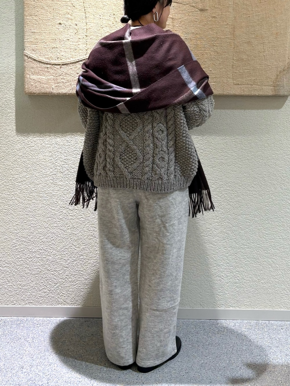 ソフトで軽やかなウールループ素材を使用したイージーパンツ。淡いグレーがトップスと自然に馴染み、素材感のコントラストで奥行きのある印象に仕上がります。