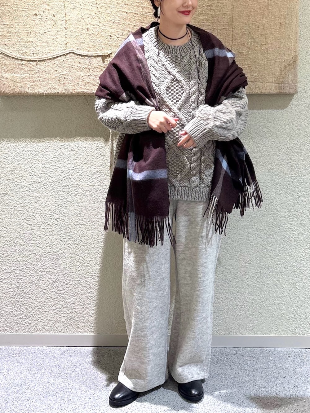 立体的なアラン編みが存在感を放つプルオーバーニット。柔らかくあたたかな着心地で、冬のスタイルをやさしく包み込みます。グレーのニュアンスが落ち着いたムードを演出。