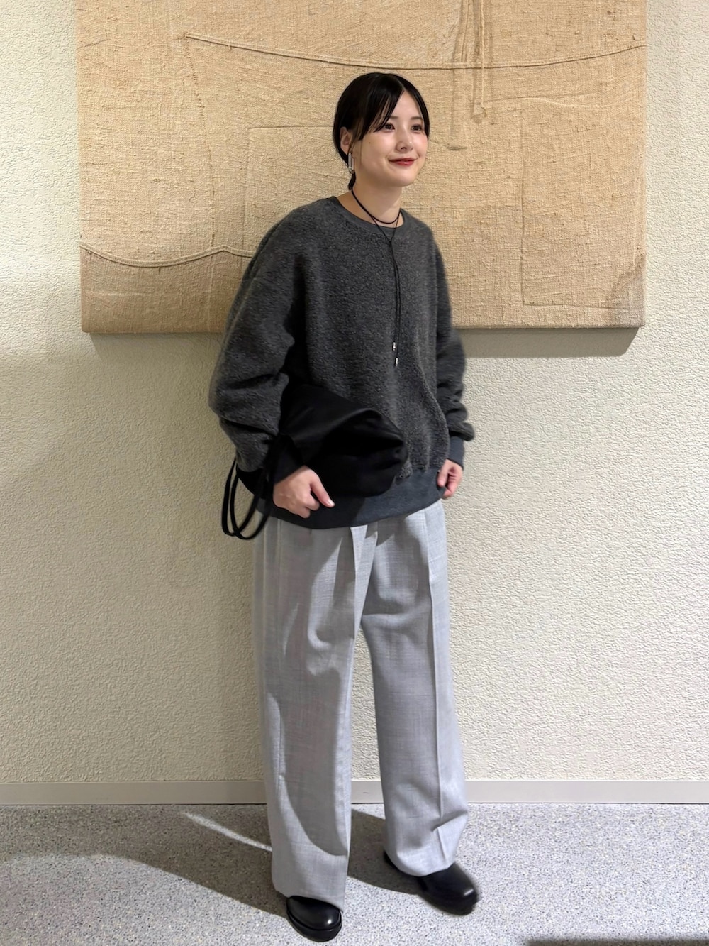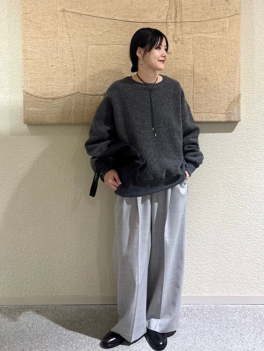 ・異素材の組み合わせで奥行きのある冬のモノトーンスタイルに