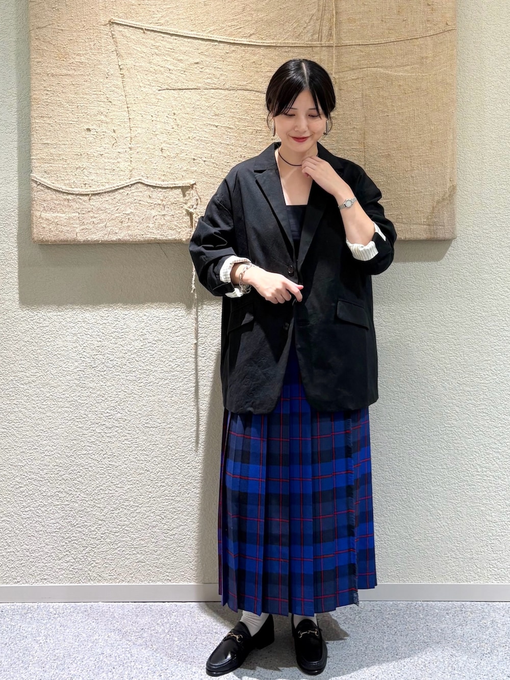 ・ジャケットの端正なラインとプリーツの揺れ感でメリハリのある大人スタイルに
