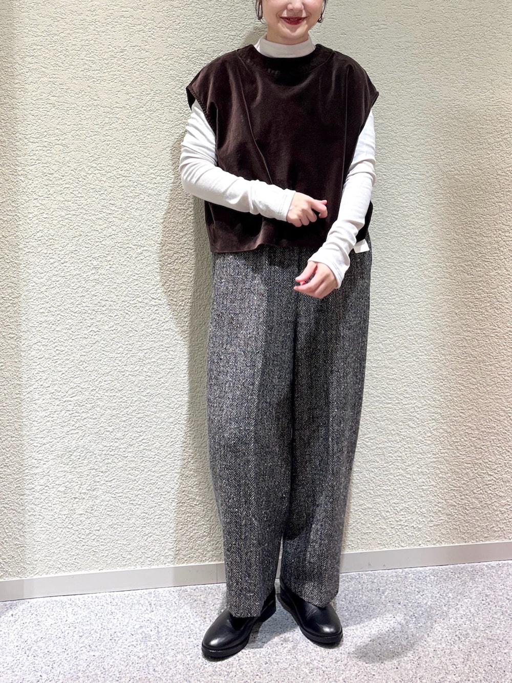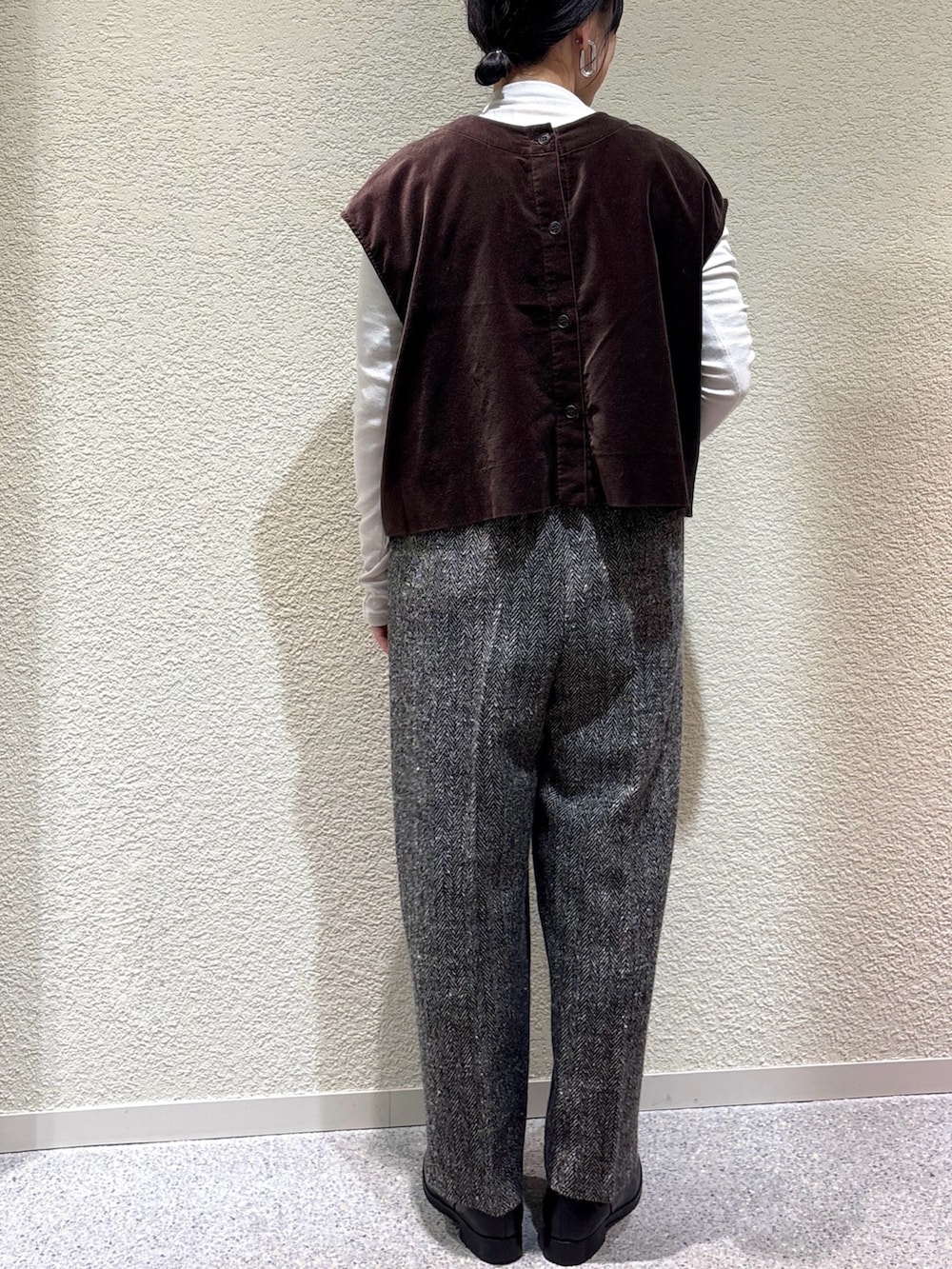 細やかなツイードの表情が上品なスラックス。すっきりとしたシルエットで大人のきれいめカジュアルに仕上がります。どんなトップスとも馴染む万能グレーが魅力。