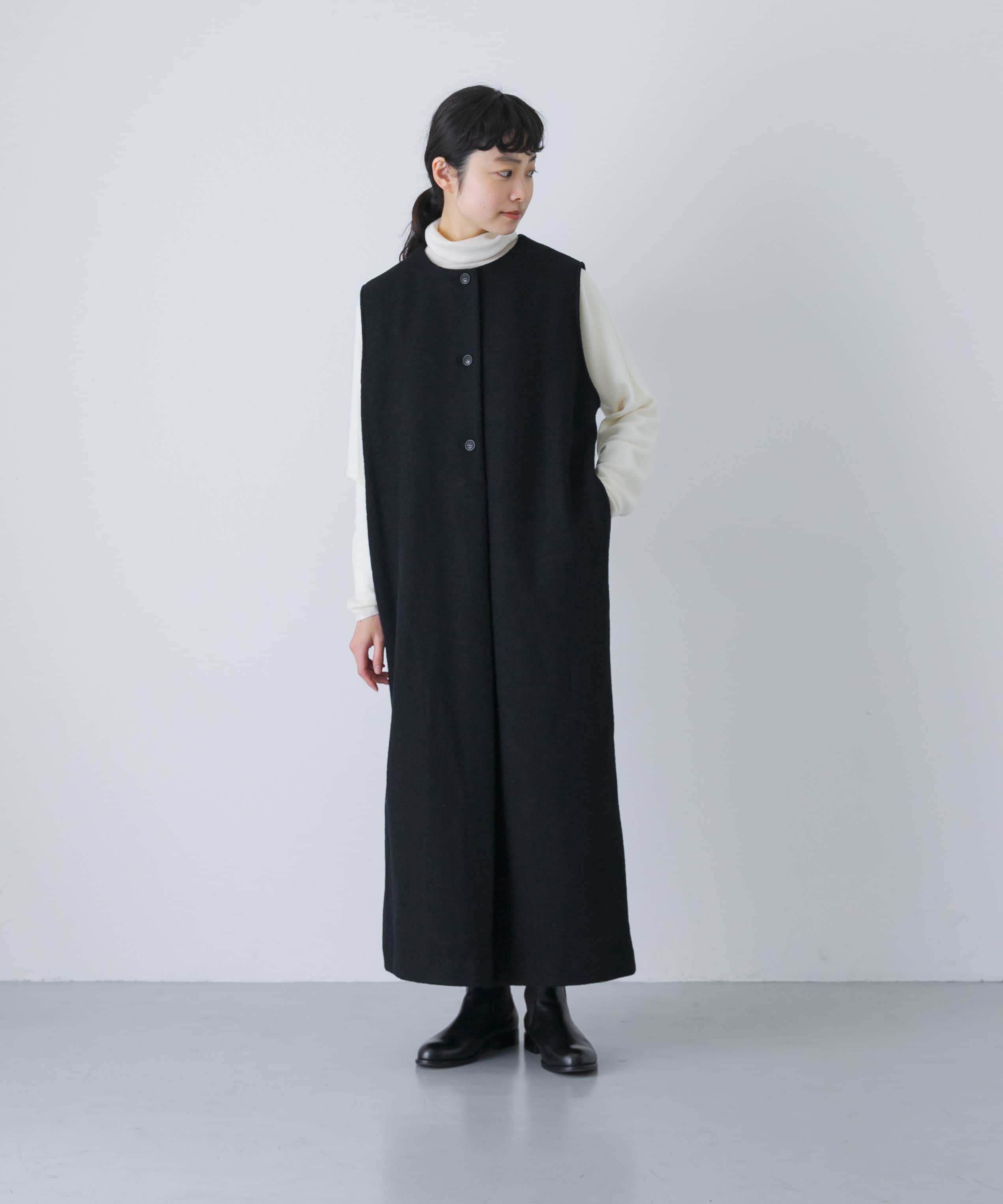 広がりすぎないシルエットで大人っぽく仕上がり、動きのあるウール素材が季節感も演出。