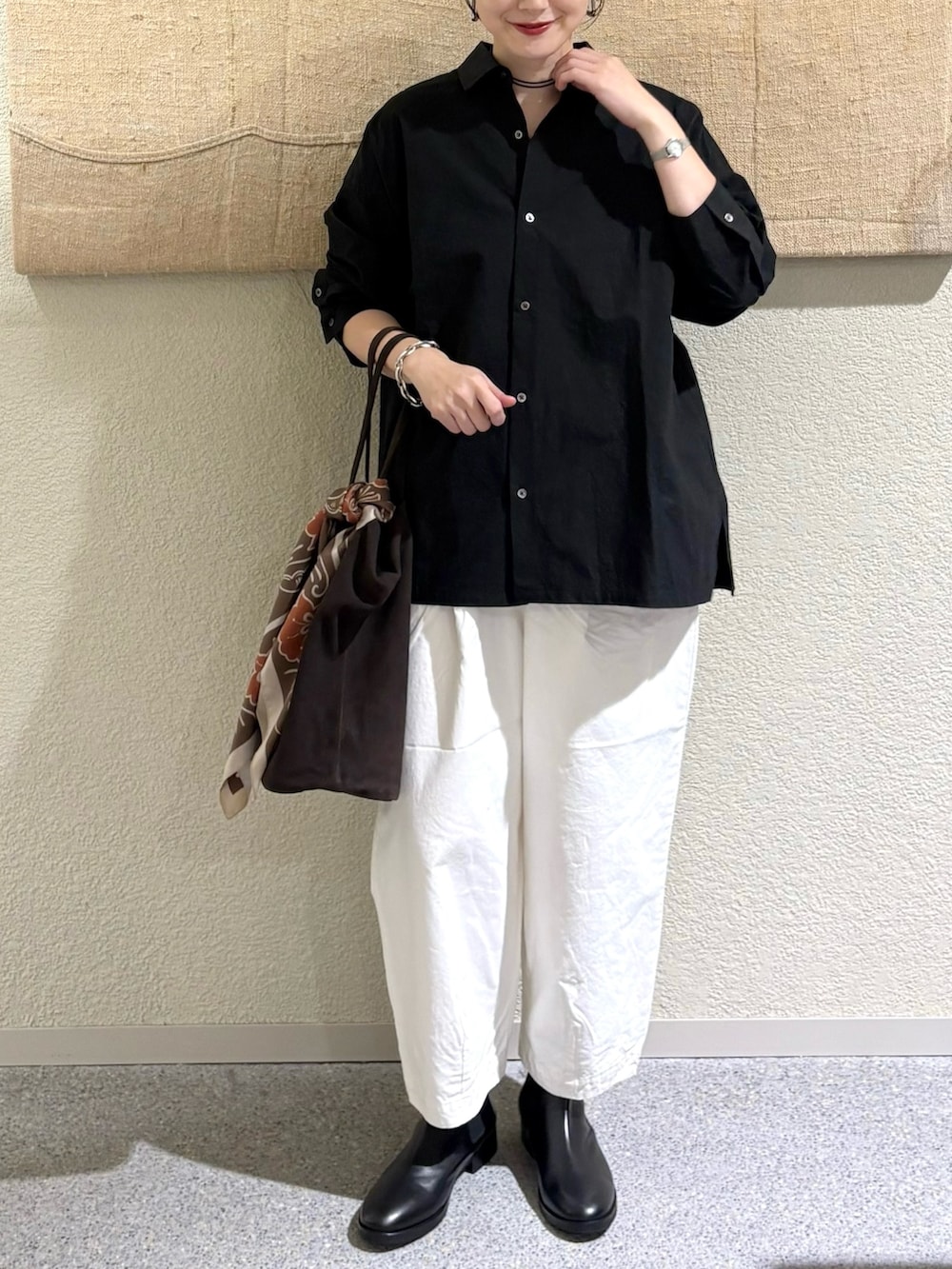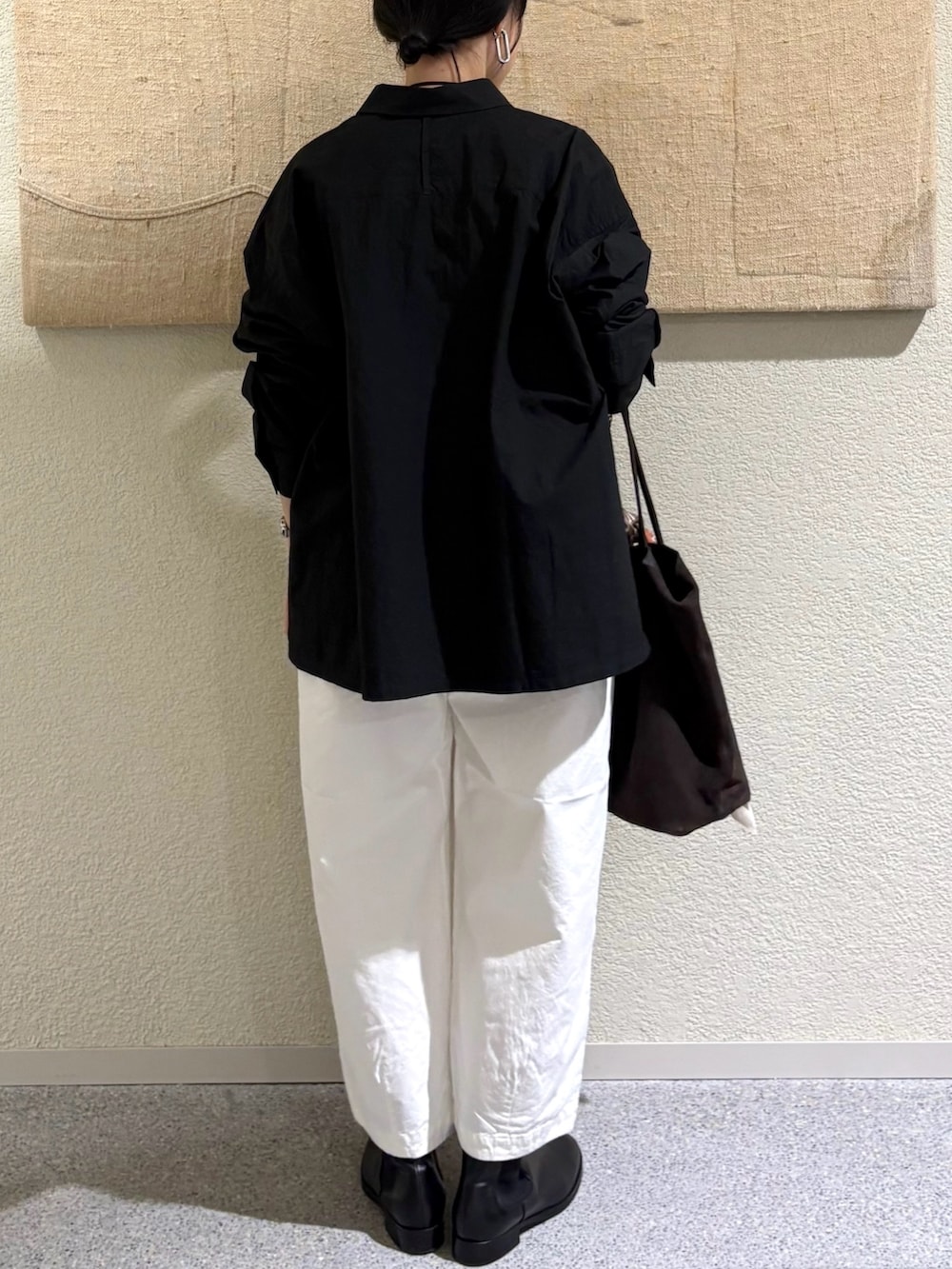 ・トップスのボリュームを活かしてシンプルながら印象的なバランスに