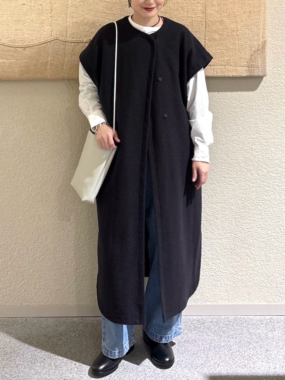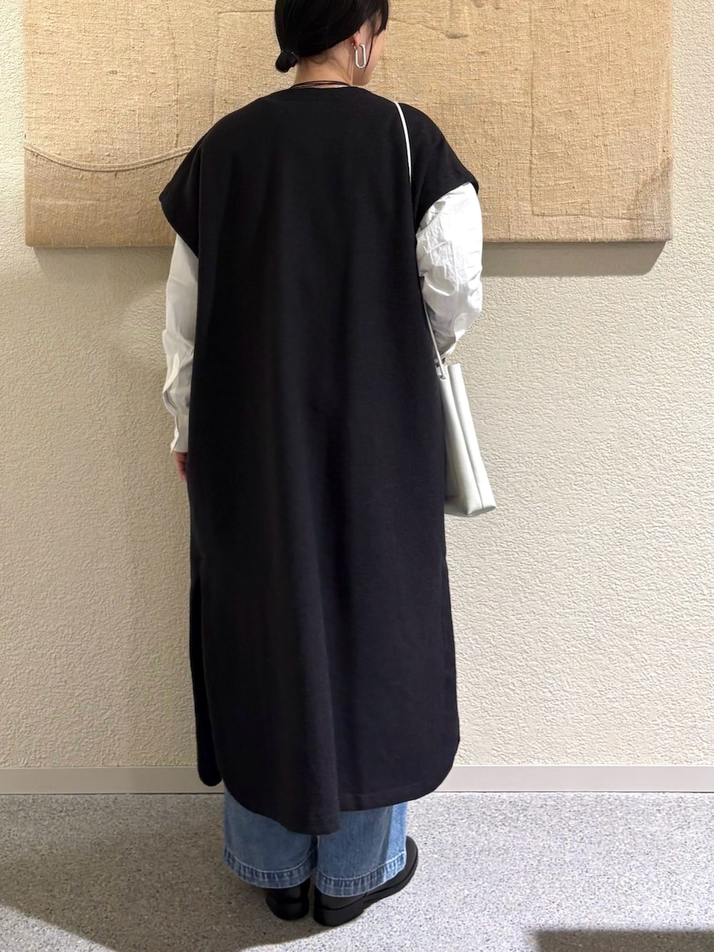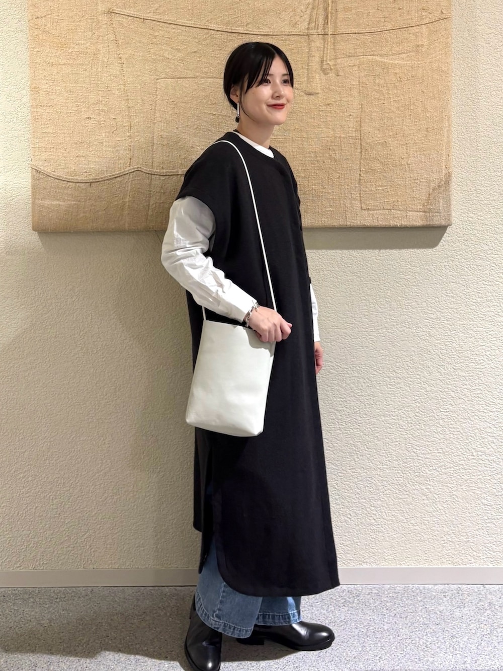 フロントの深いスリットラインが大人の抜け感を演出するロングジレワンピース。ウールの温かみと上品さを兼ね備え、レイヤードスタイルを洗練された雰囲気に仕上げます。