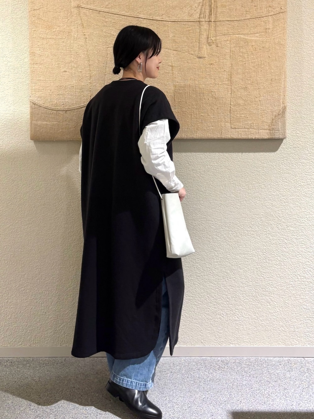 ・白トップス×黒ジレでメリハリのあるモノトーンバランス